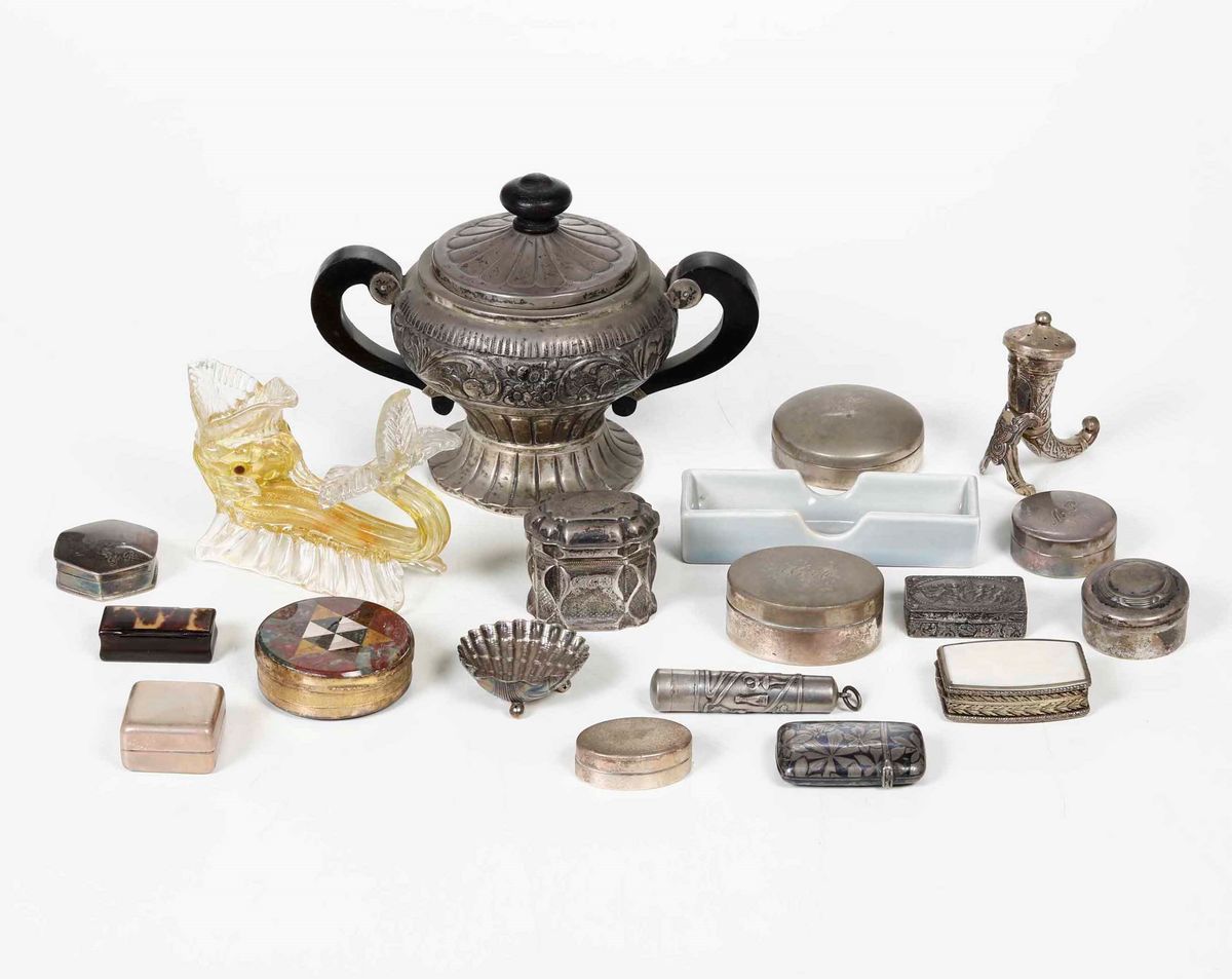 Lotto di oggetti in argento e altri materiali
