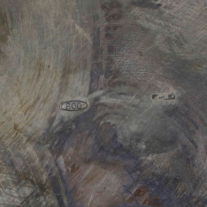 Piatto e due centrotavola in argento fuso. Diverse manifatture italiane del XX secolo