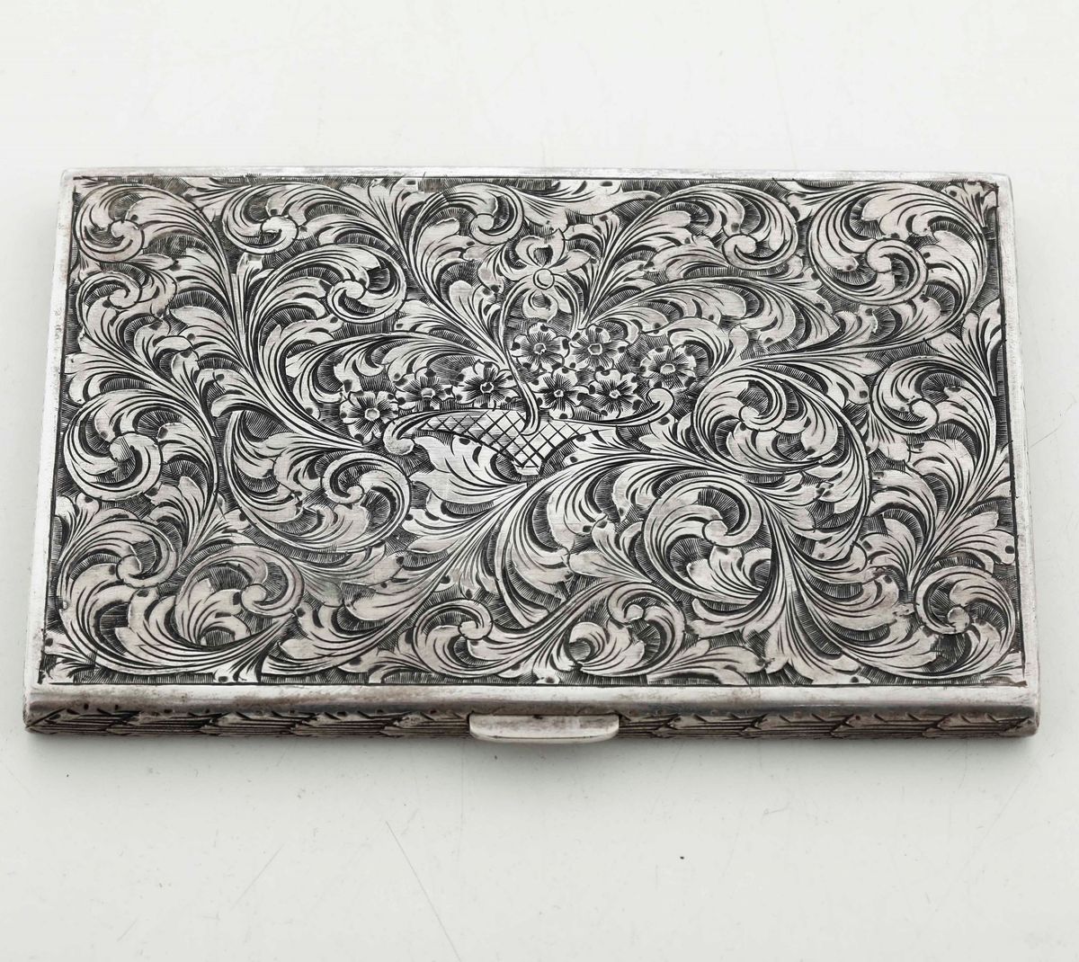 Portasigarette in argento fuso e cesellato. Argenteria italiana del XX secolo, bollo dell'argentiere consunto