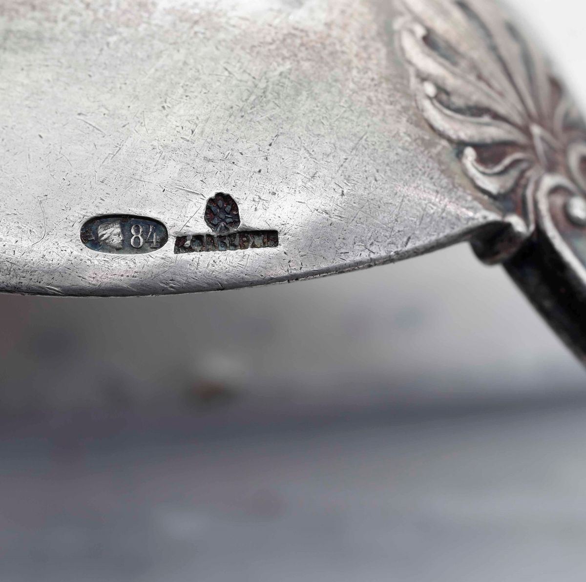 Set di nove posate in argento fuso e cesellato sei Italia XX secolo e tre Russia, XX secolo