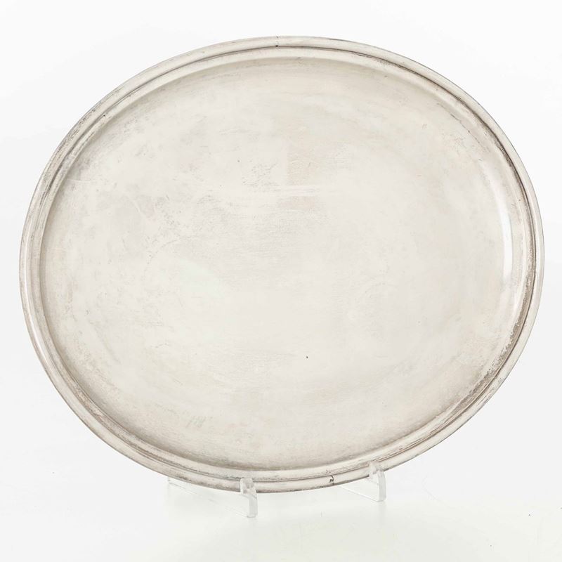Vassoio ovale in argento. Argenteria italiana del XX secolo. Argentiere Cesa, Alessandria