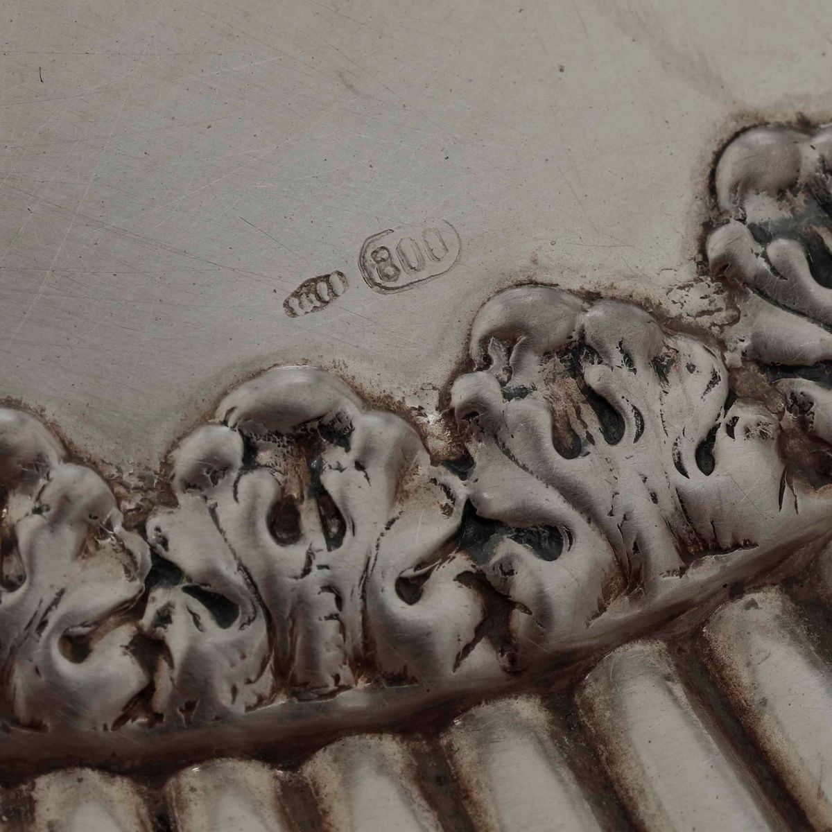 Vassoio ovale in argento fuso, sbalzato e cesellato. Argenteria italiana del XX secolo