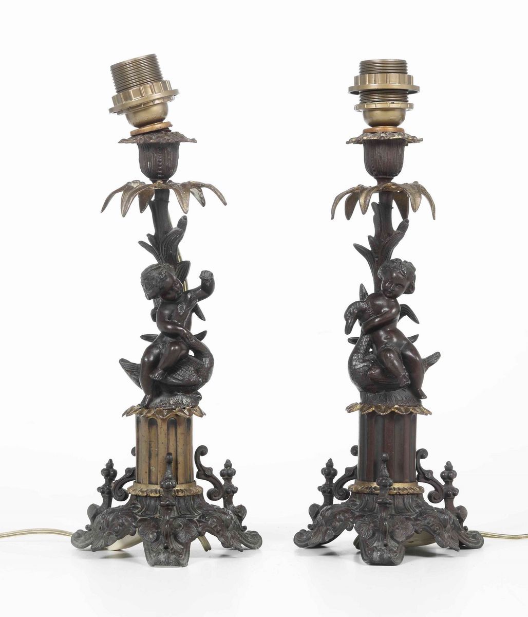 Coppia di candelieri con putti in bronzo. XIX secolo