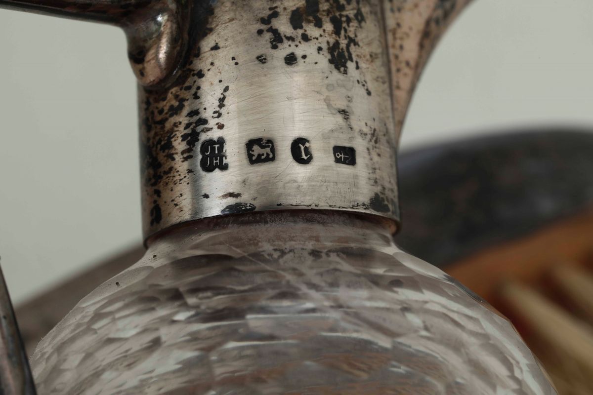 comprendente 2 piccole brocche, un contenitore con brocchette e bicchieri in vetro e due spazzole