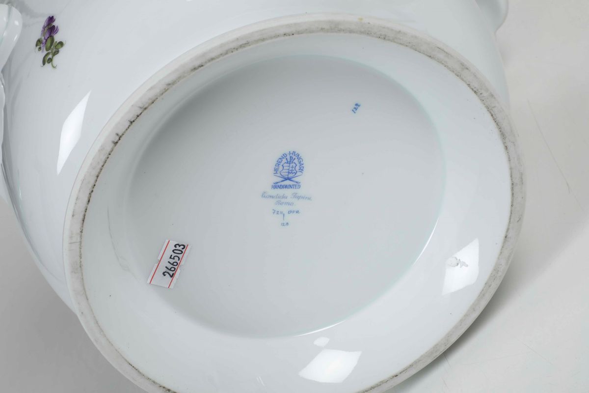 Porcellana. Marca: simbolo grafico della manifattura con "Herend Hungary Handpainted" in blu. Dimensioni: altezza cm 20,4; diametro cm 30