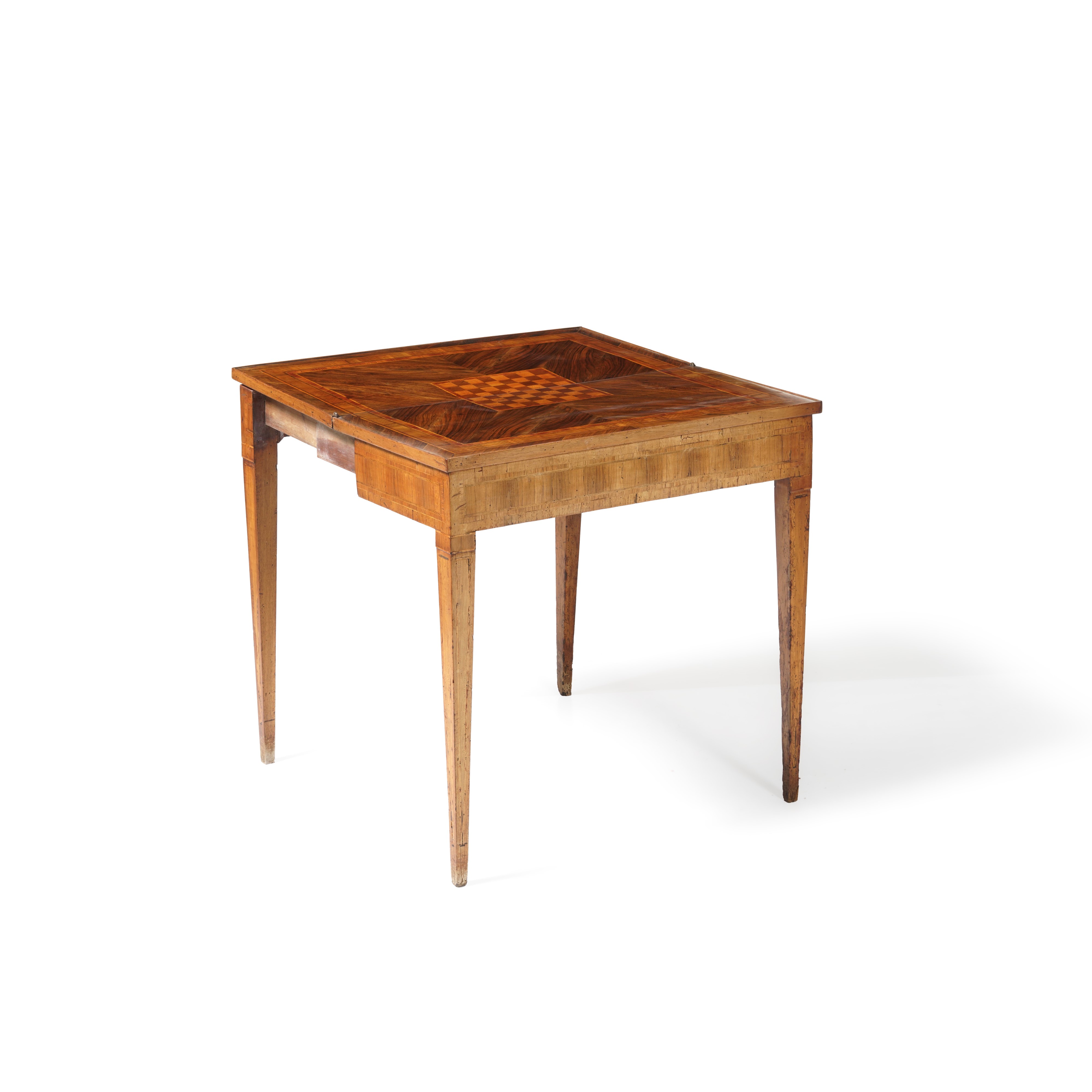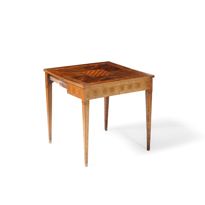 Tavolo da gioco lastronato ed intarsiato. fine XVIII secolo