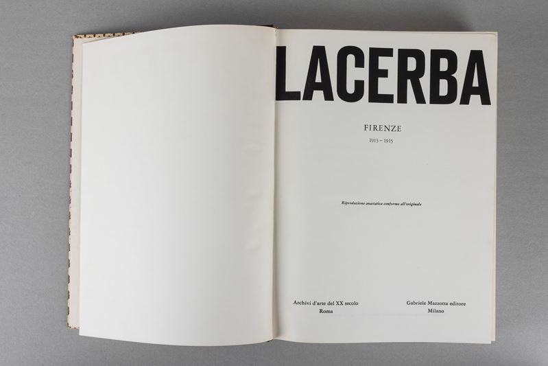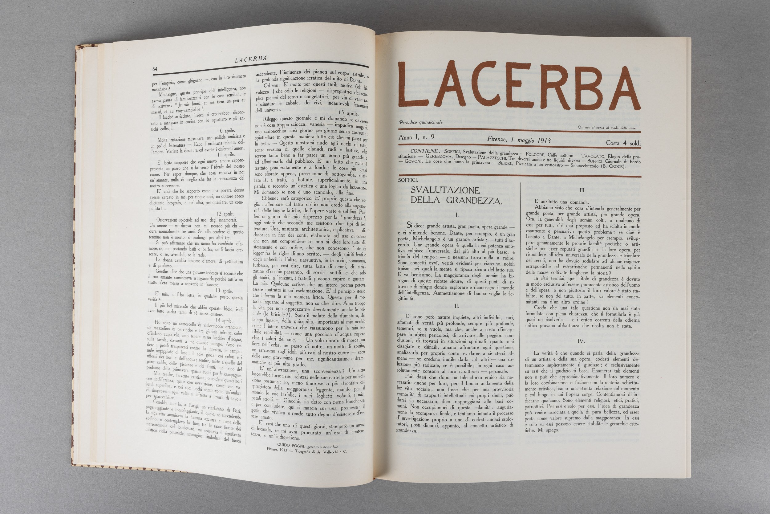 Riproduzione anastatica conforme all’originale dei numeri della rivista dall’1 gennaio 1913 al 22 maggio 1915, unito a un’introduzione a L’Acerba a cura di Raffaele De Grada, Gabriele Mazzotta Editore, Milano, edizione tirata in 700 copie, es. n. 425, opera in due volumi con copertina rigida entro cofanetto