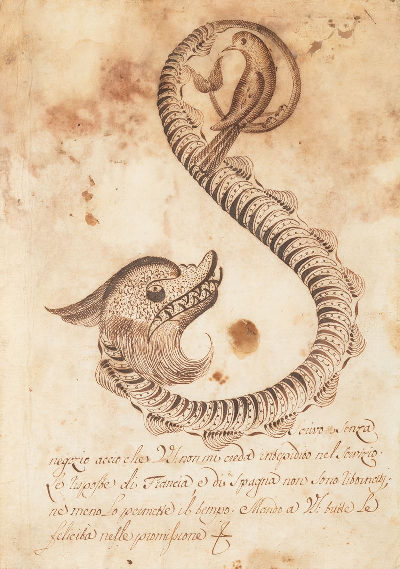 Il volume è accompagnato da un disegno china su carta raffigurante animale fantastico, cm 29 x 21