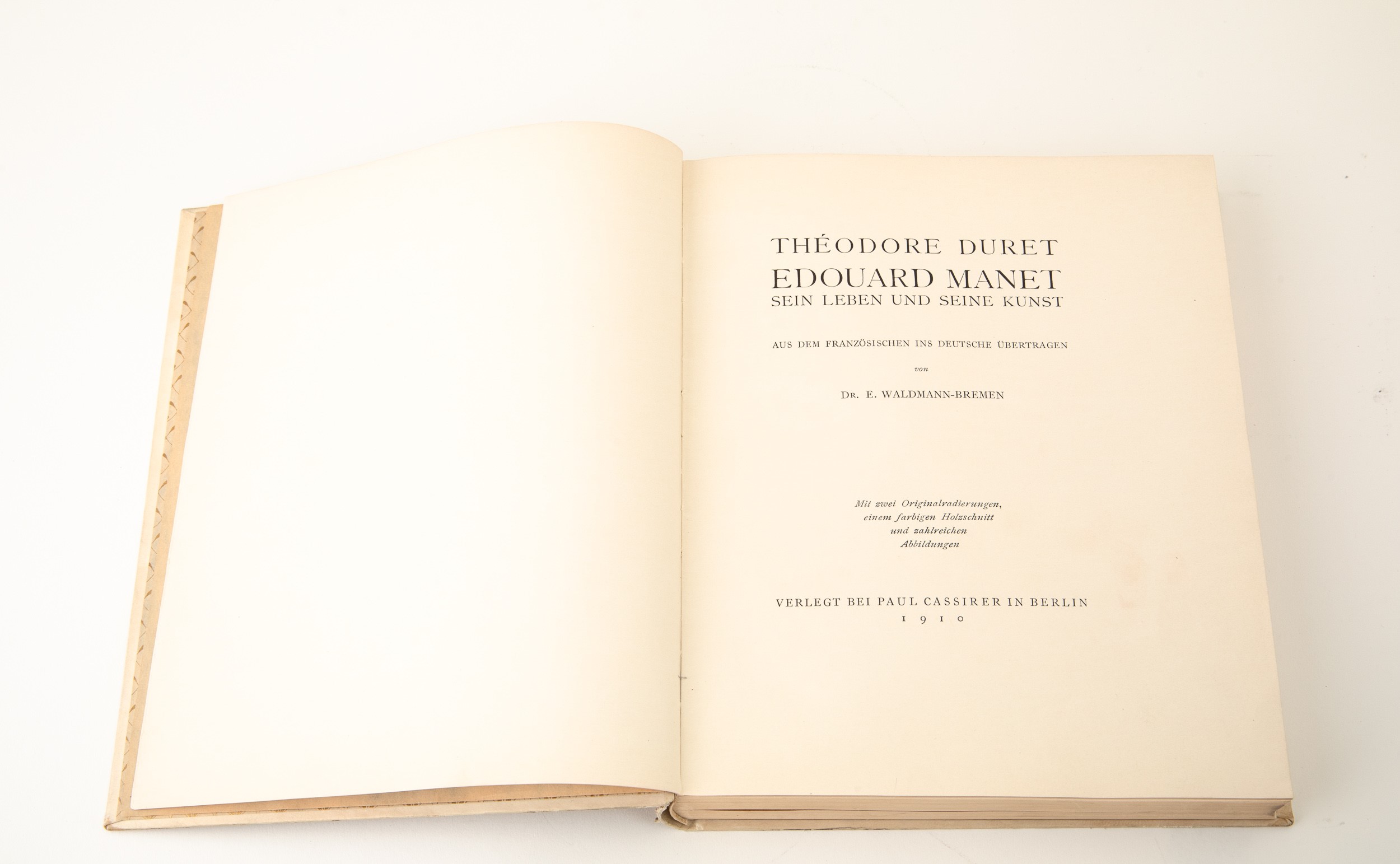 Catalogo a cura di Théodore Duret in lingua tedesca contenente due acquaforti e una litografia a colori, Edizioni Paul Cassirer, Berlino, pp. 322, copertina rigida.