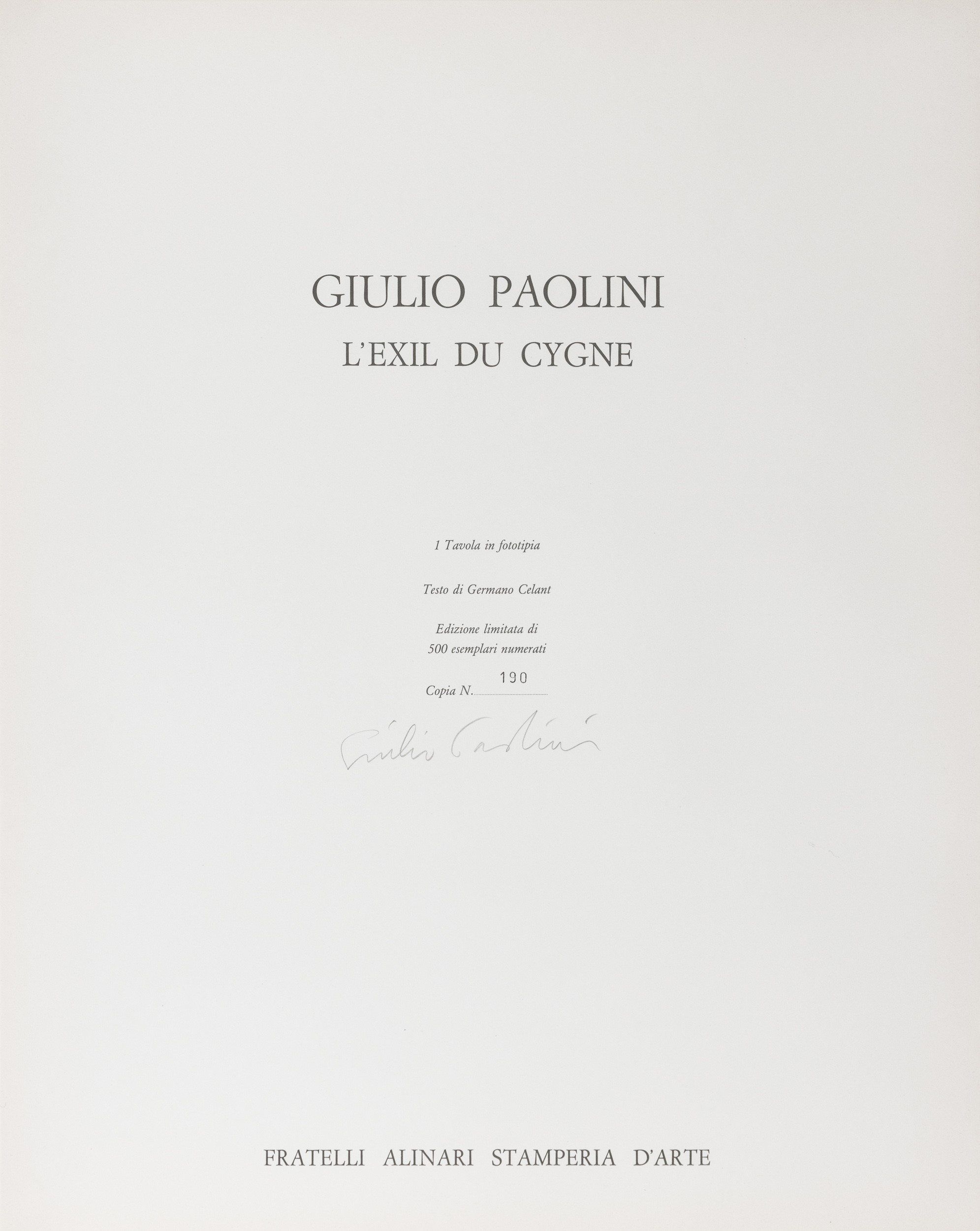 Tavola in fototipia entro cartella con testo di Germano Celant, es. 190/500, firmata a matita e numerata nel frontespizio, Edizioni Fratelli Alinari Stamperia d'Arte, Firenze. Dimensioni fototipia: 50 x 80 cm