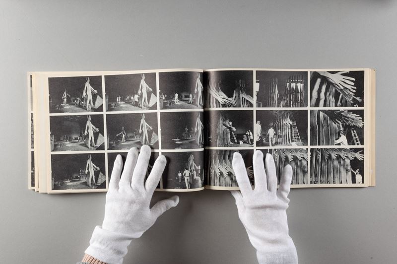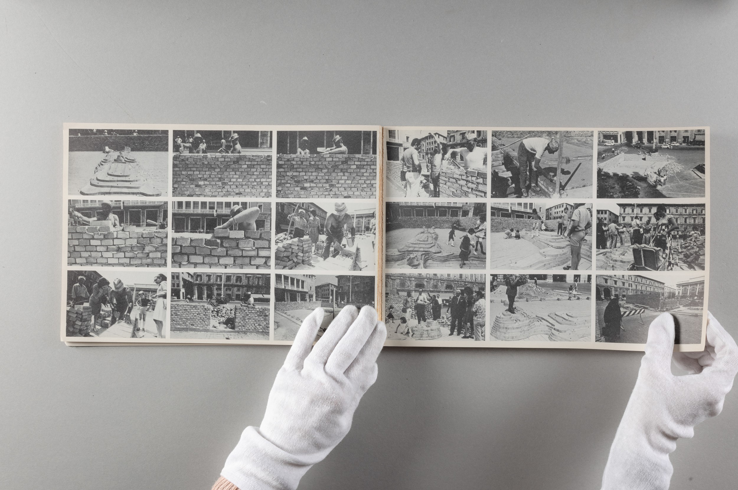 Catalogo della mostra tenutasi a Pesaro nel 1972 contenente foto di tutte le fasi dell'allestimento iniziate da Ugo Mulas e portate a termine da Giorgio Colombo, il quale ha curato anche l'impaginazione.