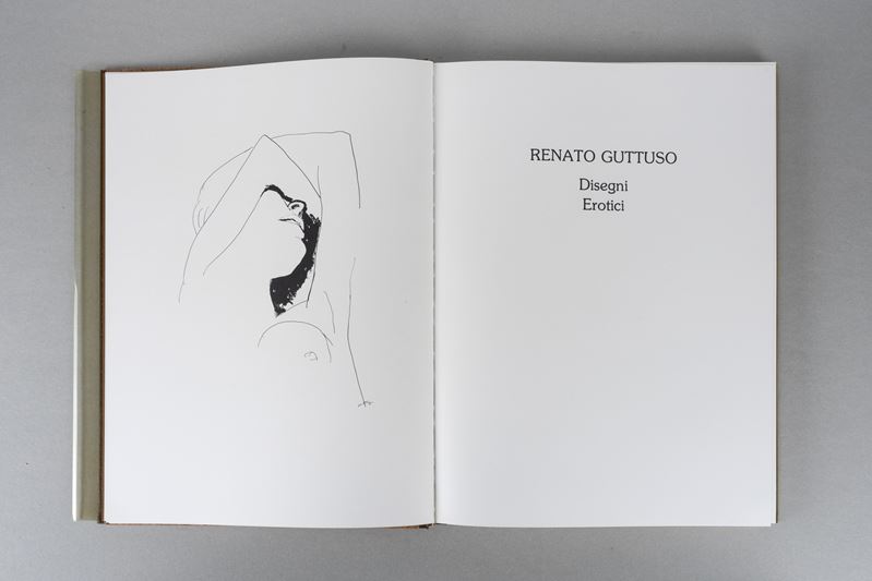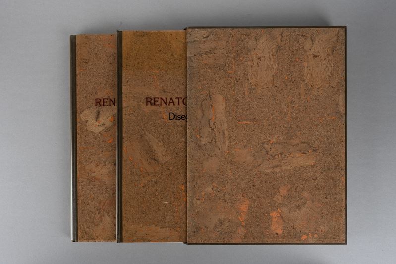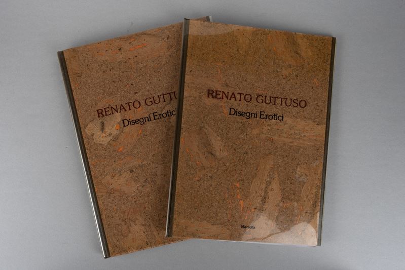 Catalogo a cura di Attilio Codognato con un testo di Cesare Musatti e tavole di Renato Guttuso, edizione tirata in 1026 copie, es. n. CXXXVII contenente una suite di sedici tavole in legatura speciale e una litografia originale firmata e numerata es. n. 38/99, , nuove Edizioni Gabriele Mazzotta, Milano, copertina rigida in sughero con sovracoperta in acetato