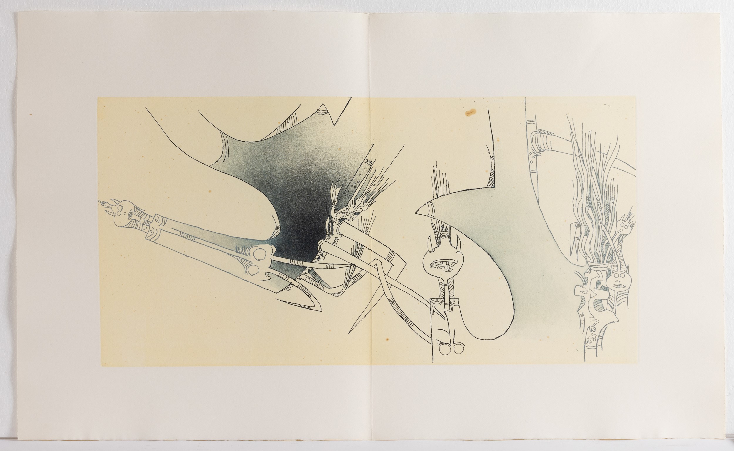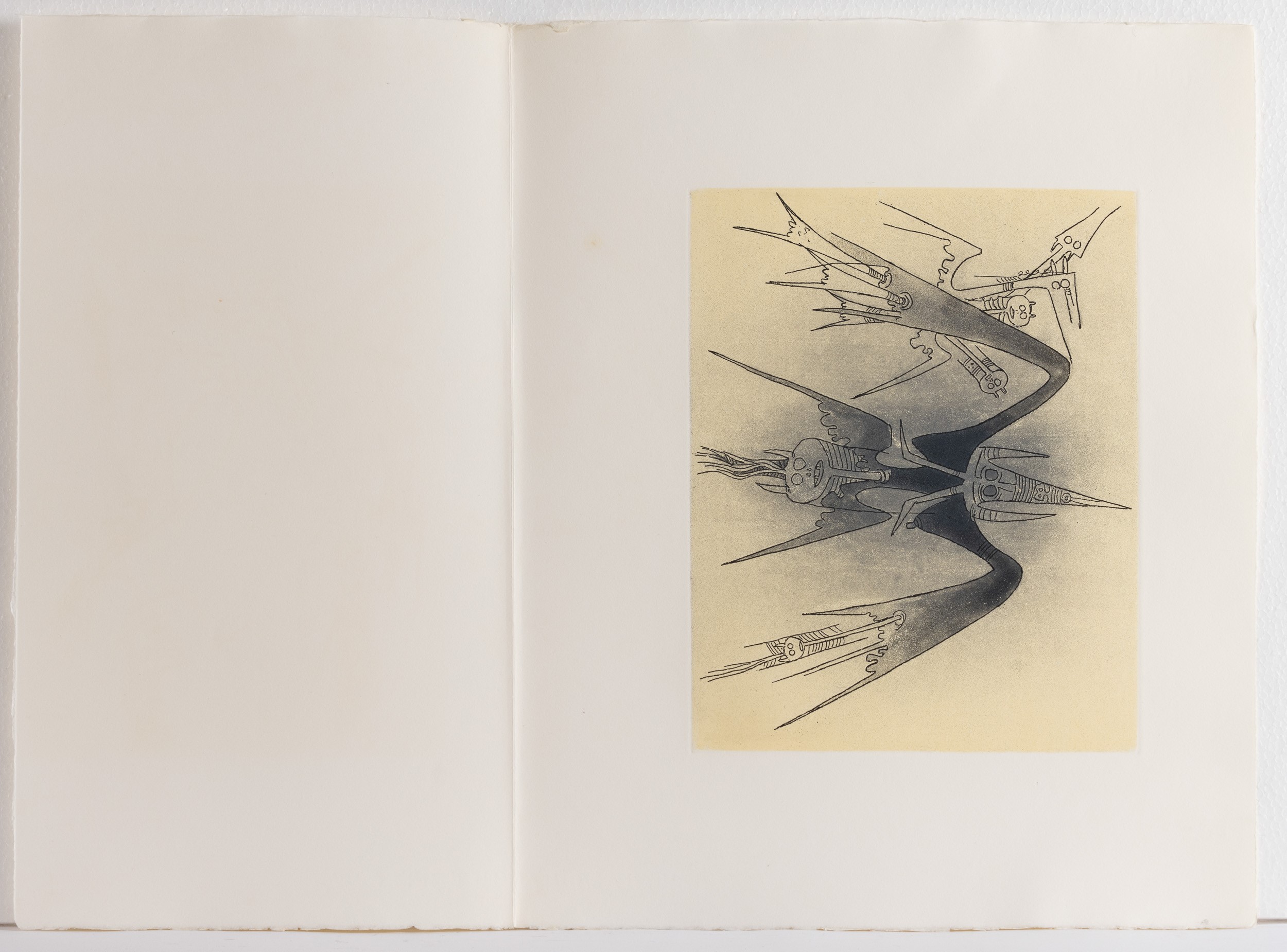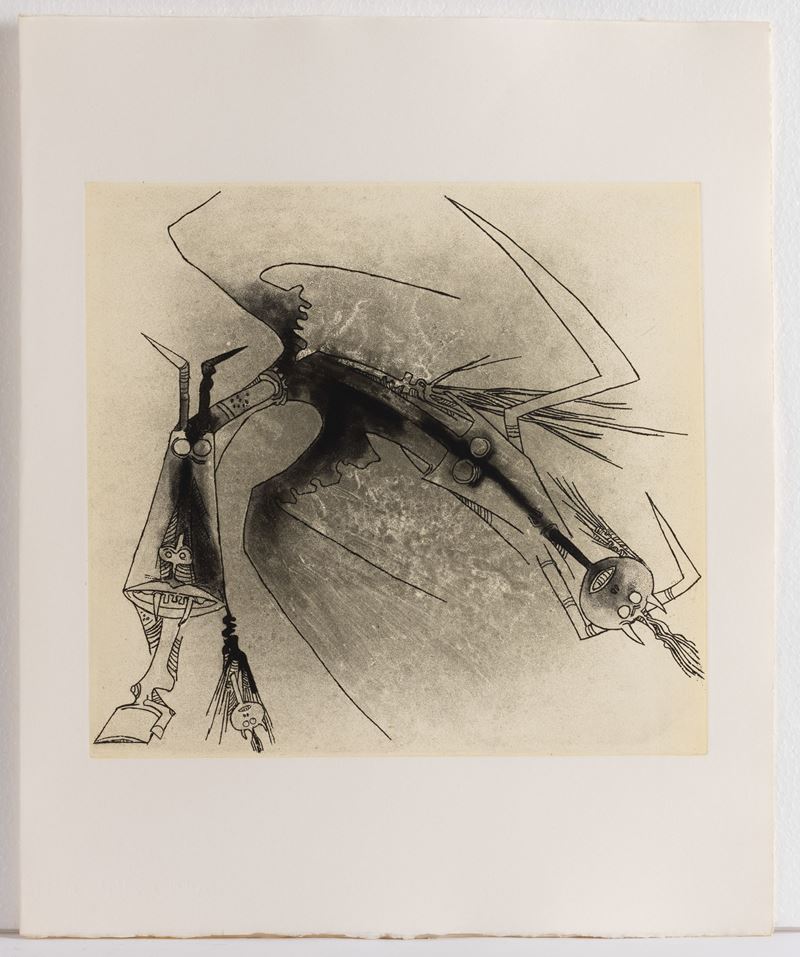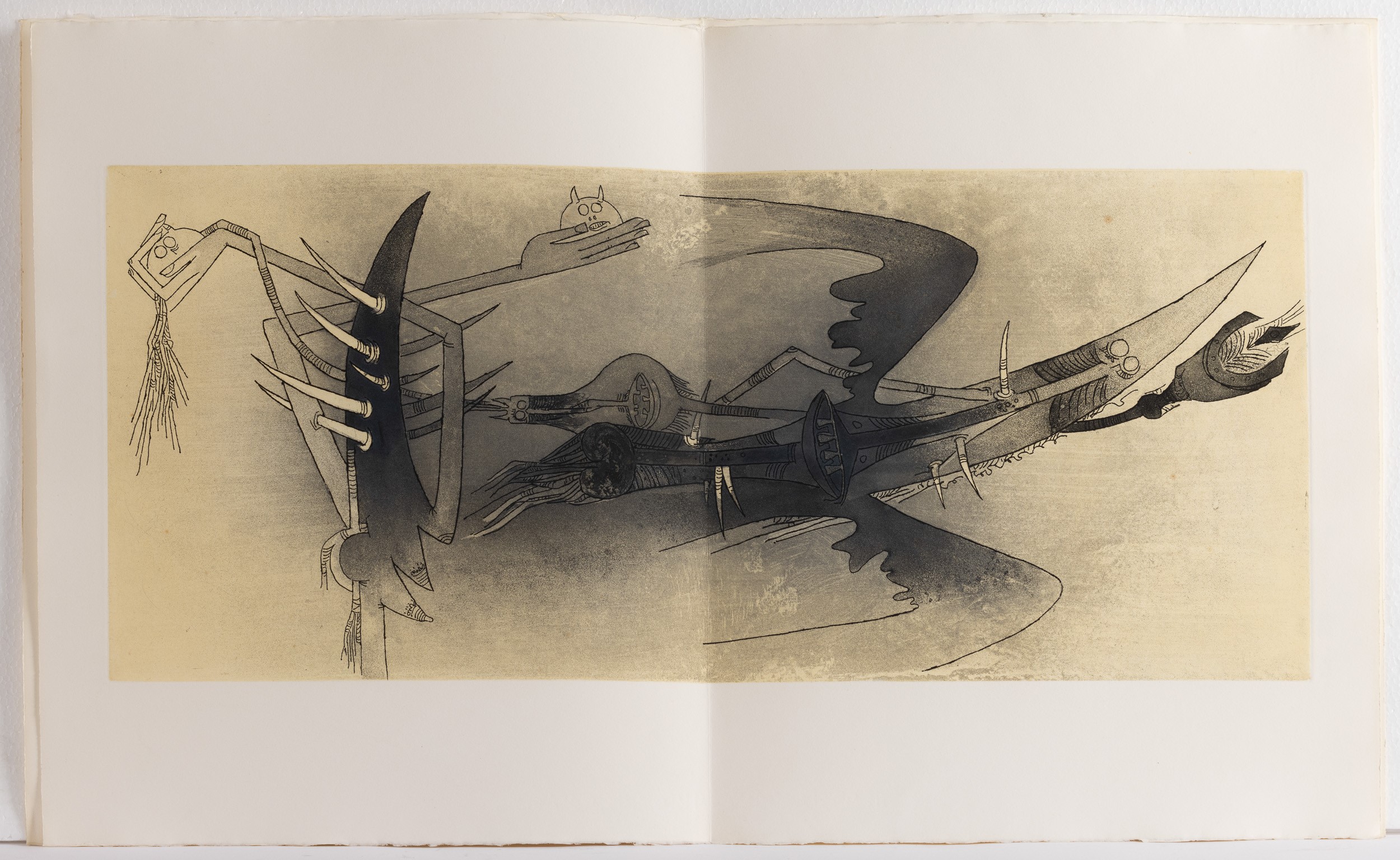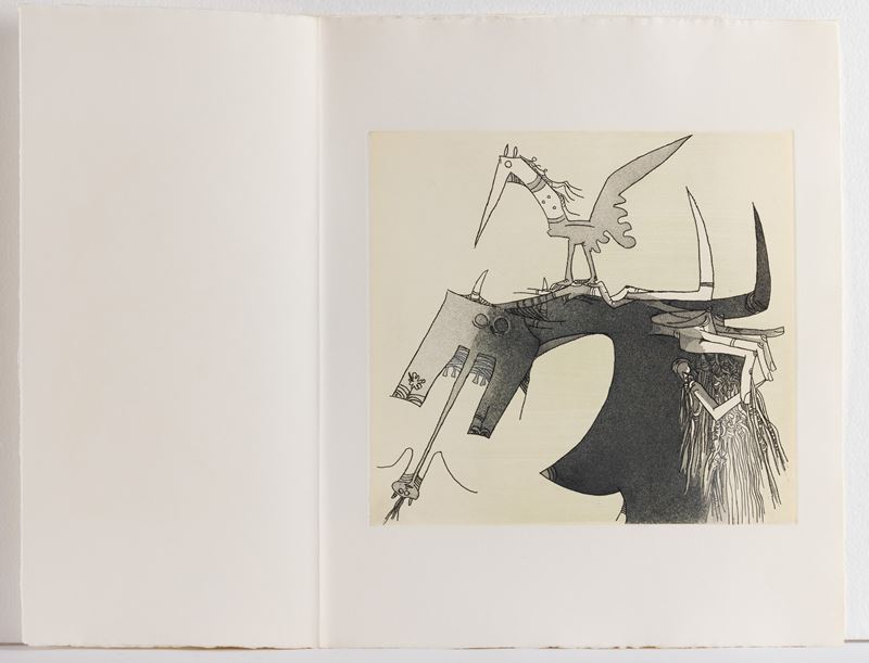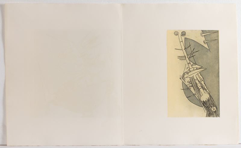 Cartella contenente quattordici acqueforti di Wifredo Lam su carta Filicarta filigrané e il poema di Ghérasim Luca, es. 51/125, firmato dall'autore e dall'artista.