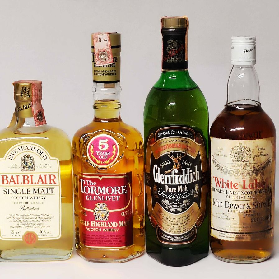Balblair, Glenlivet, Glenfiddich, White Label, Scoth Whisky