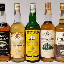 Glen Catrine, Glen Moray, Cutty Sark, Glen Flagler, Royal Land, Scoth Whisky