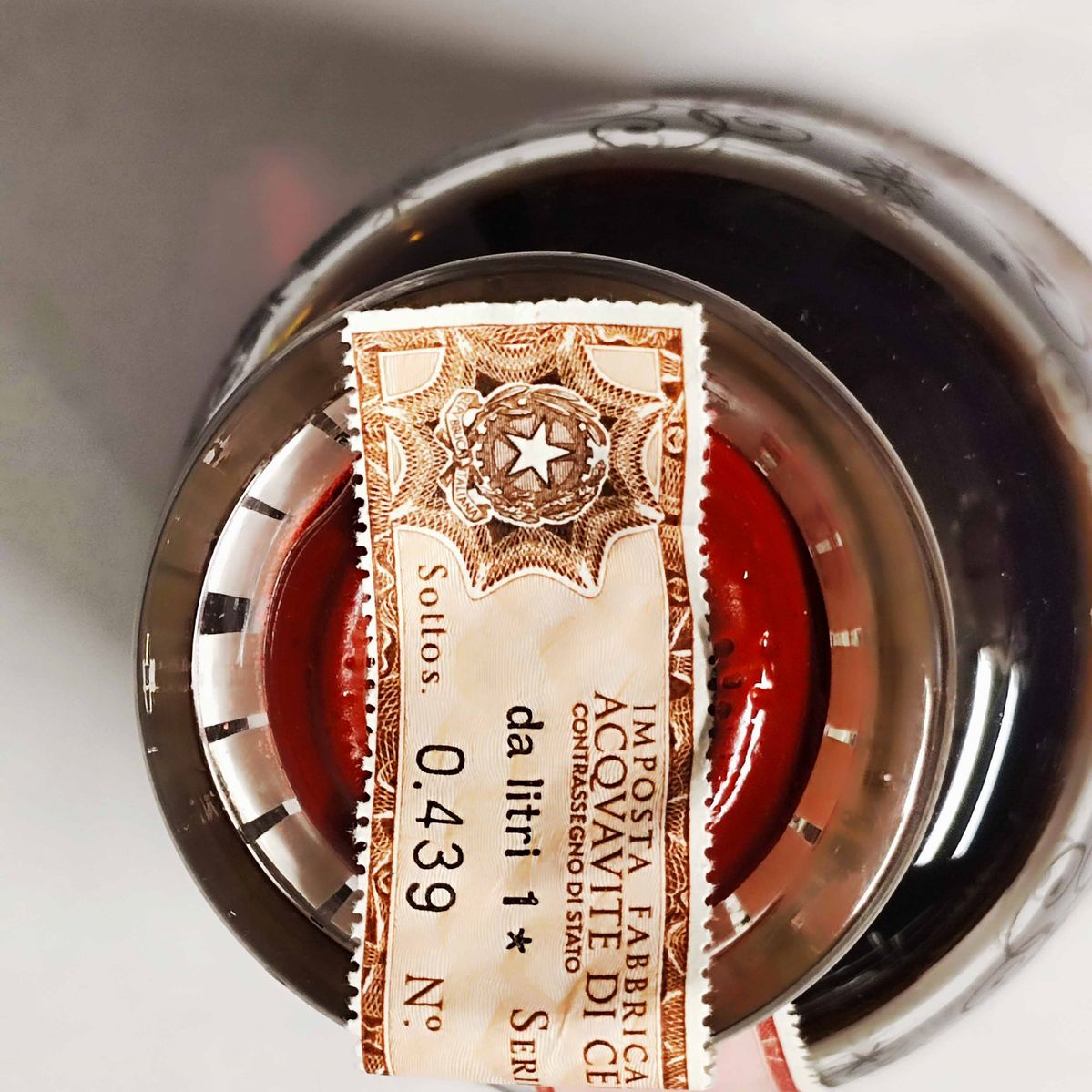 etichetta e capsula con segni d'usura del tempo