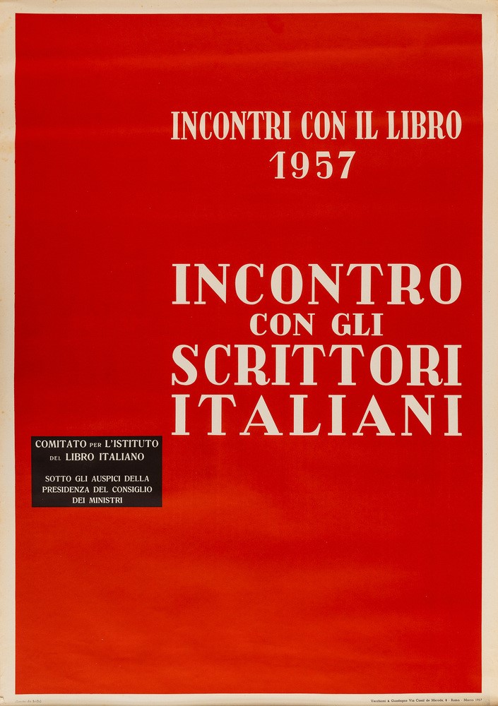 Affisso offset, 1957. Impresso da Vecchioni & Guadagno, Roma. Cm 70 x 100,8. Qualità A.