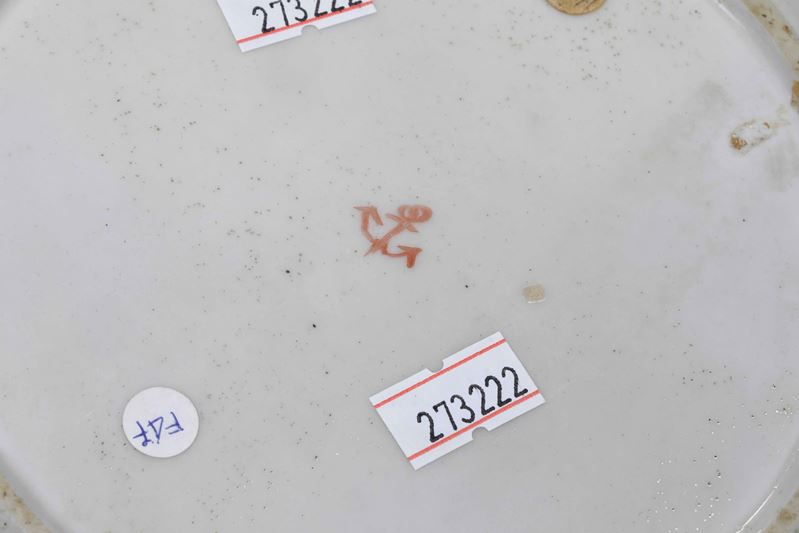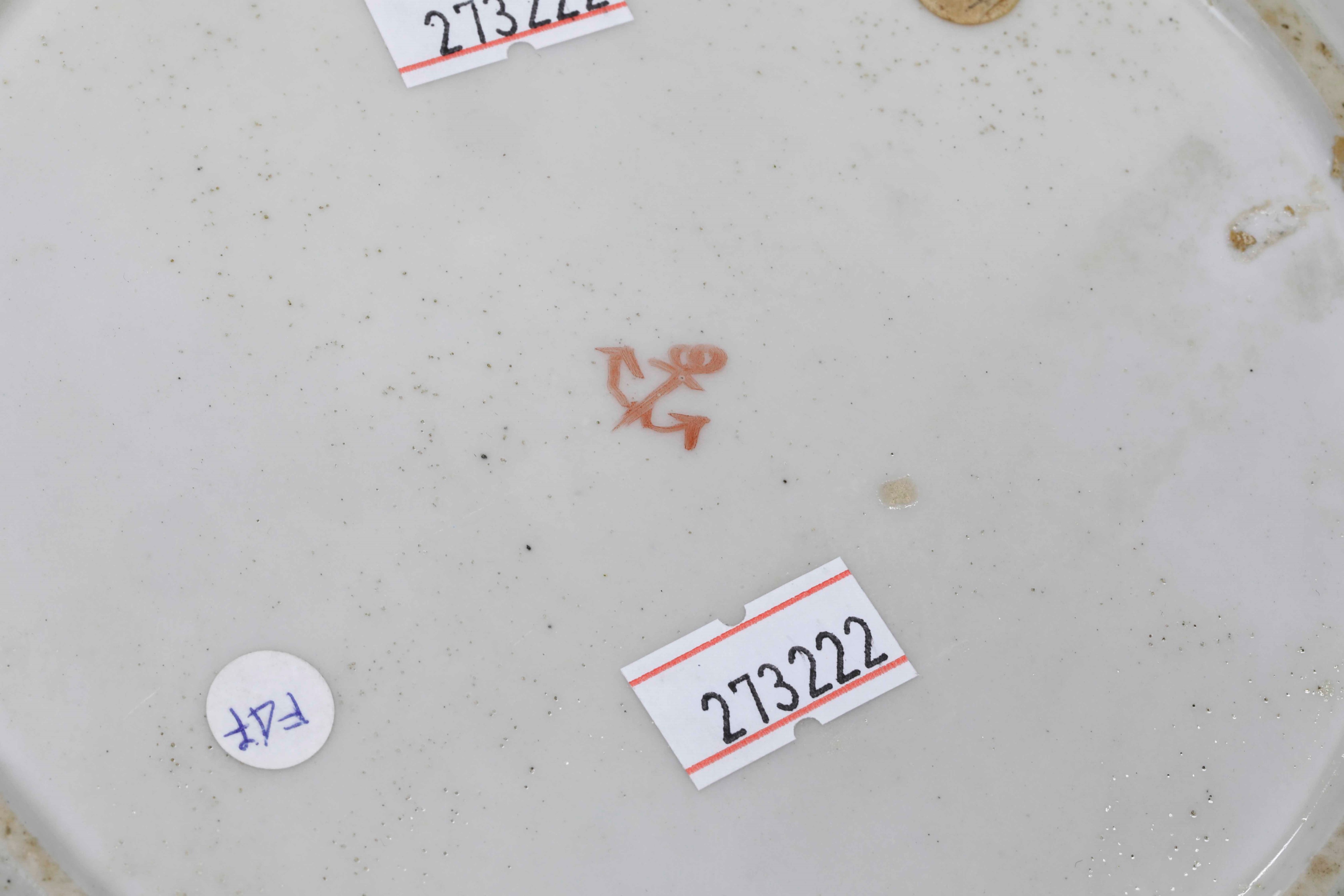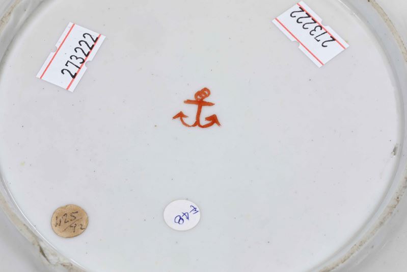 Porcellana. Marca: ancora in rosso. Diametro cm 23,2. Conservazione: ottima; insignificanti usure allo smalto