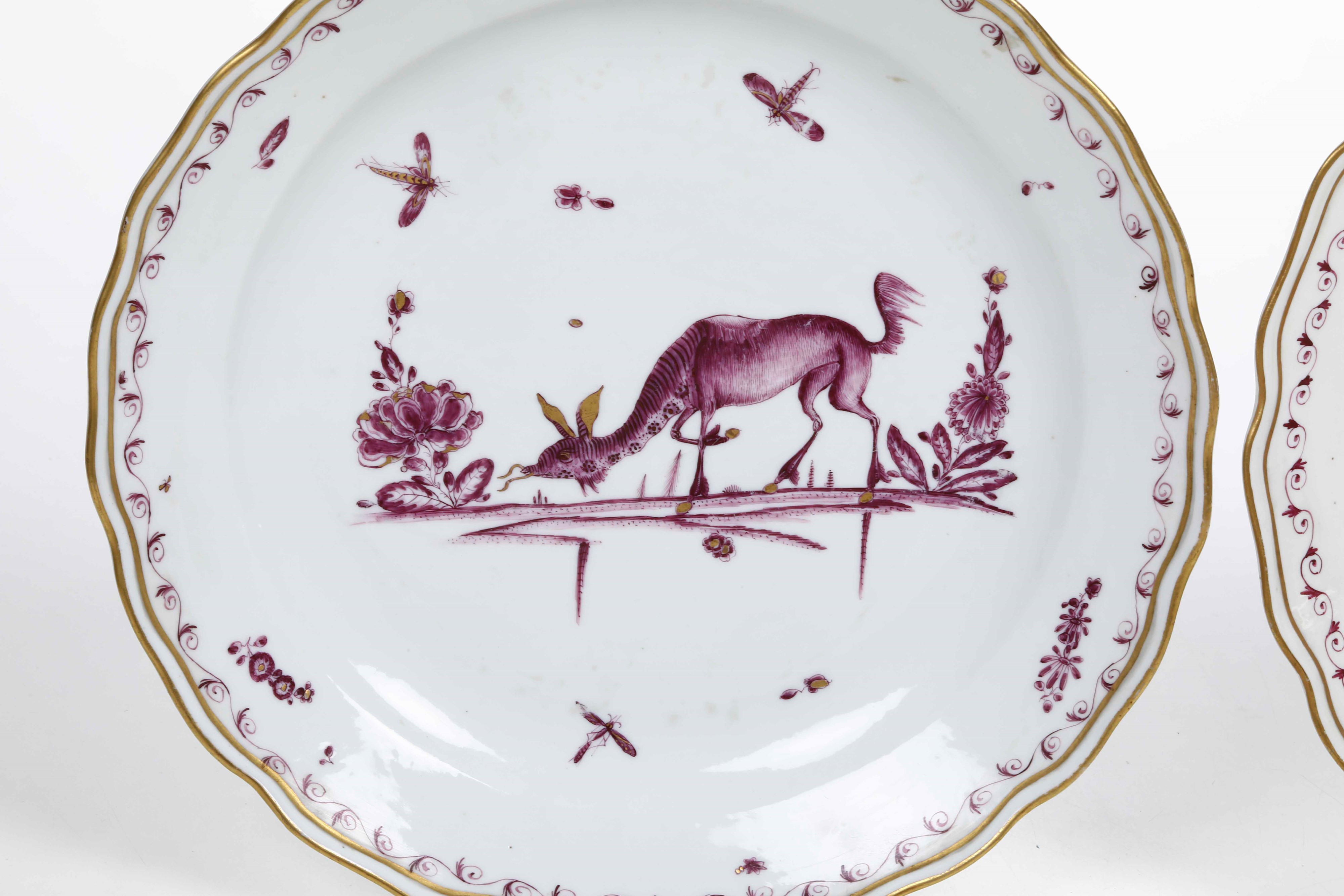 Dal bordo polilobato sono decorate in monocromia porpora ed oro con animali fantastici