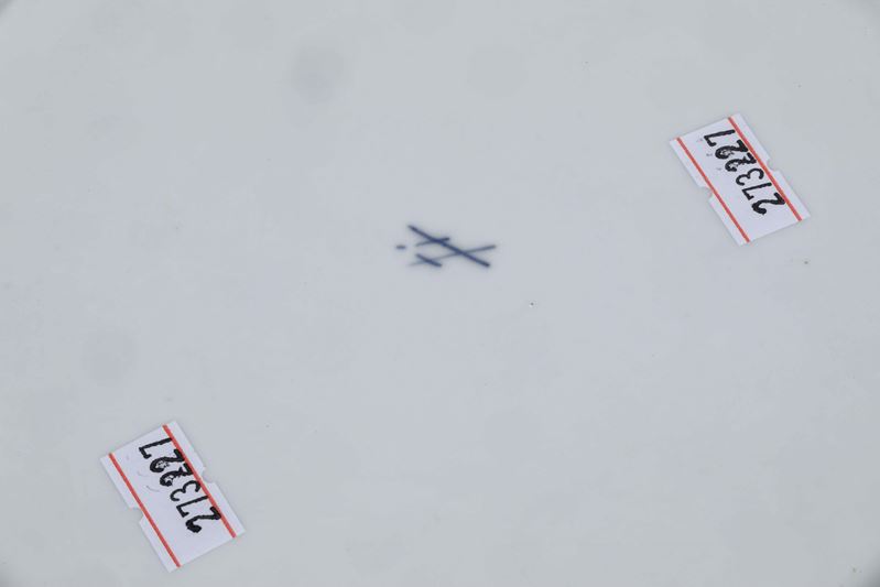 Porcellana. Marca: spade incrociate in blu. Diametro cm 28,7; cm 30,5. Conservazione: ottima; insignificanti usure
