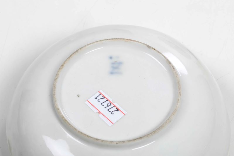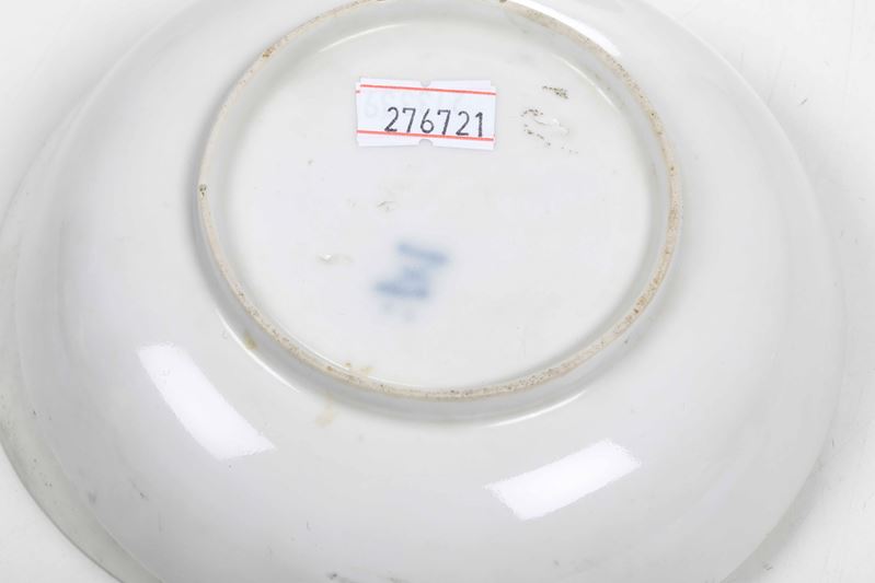 Porcellana. Marca: 2 pezzi con "Z" e due puntini in blu. Diametro cm 13,2. Conservazione: buona; usure all’oro