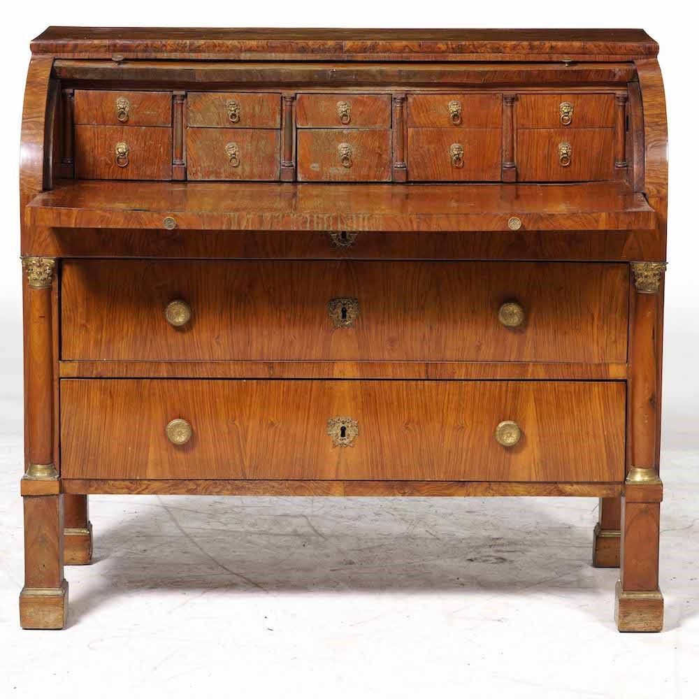 due cassetti alla base, colonne sui montanti con capitelli in bronzo dorato