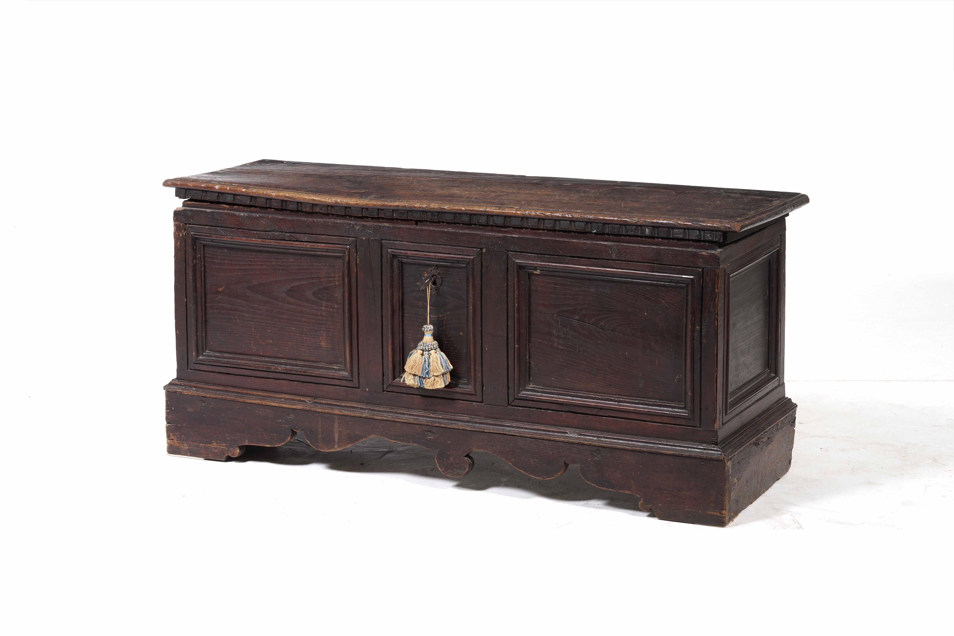 Cassapanca in noce patinato. Italia centrale, XVIII secolo