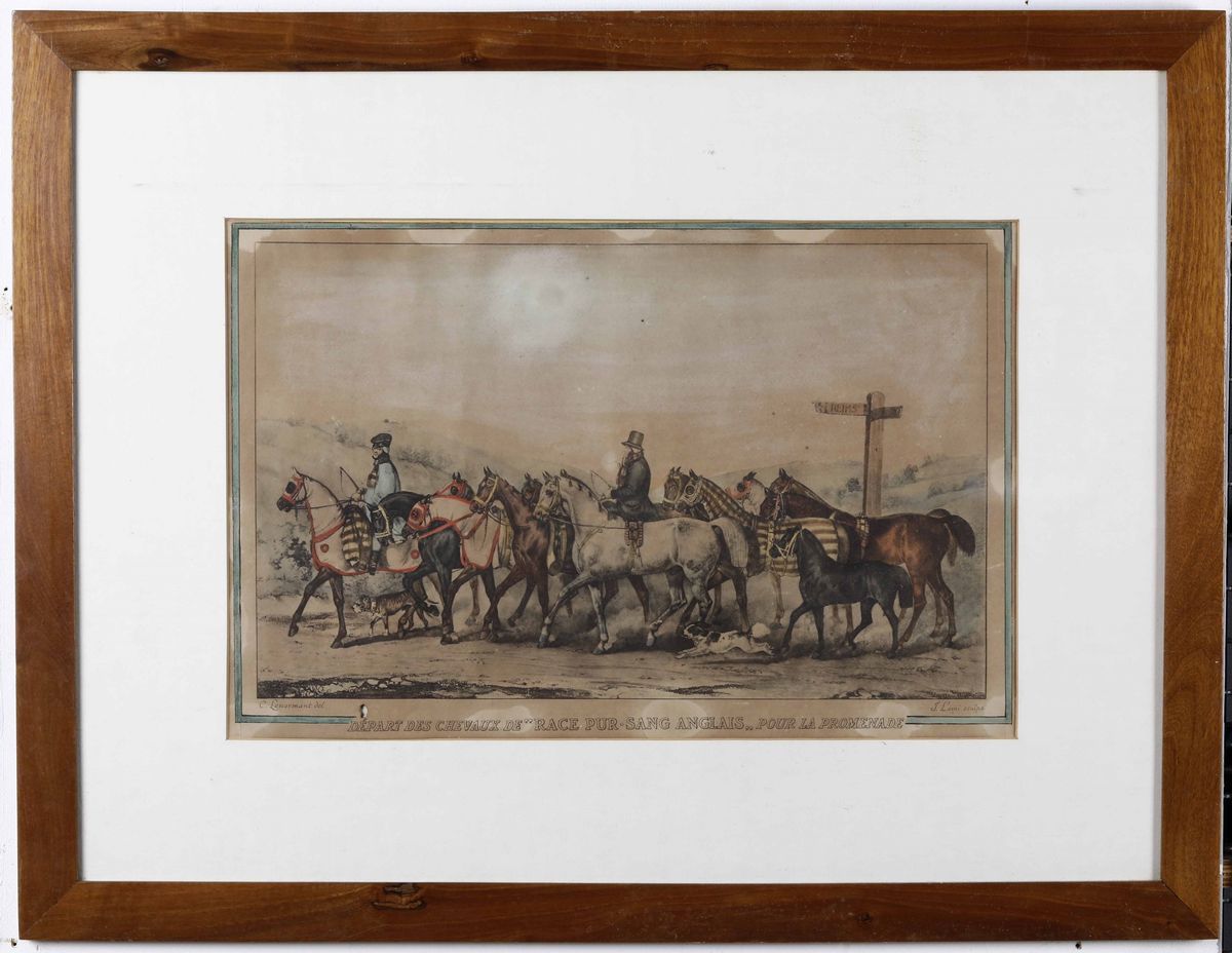 Coppia di stampe acquerellate. Francia XIX secolo