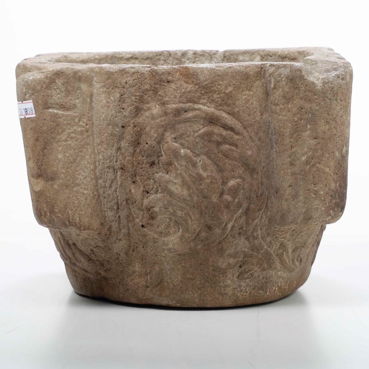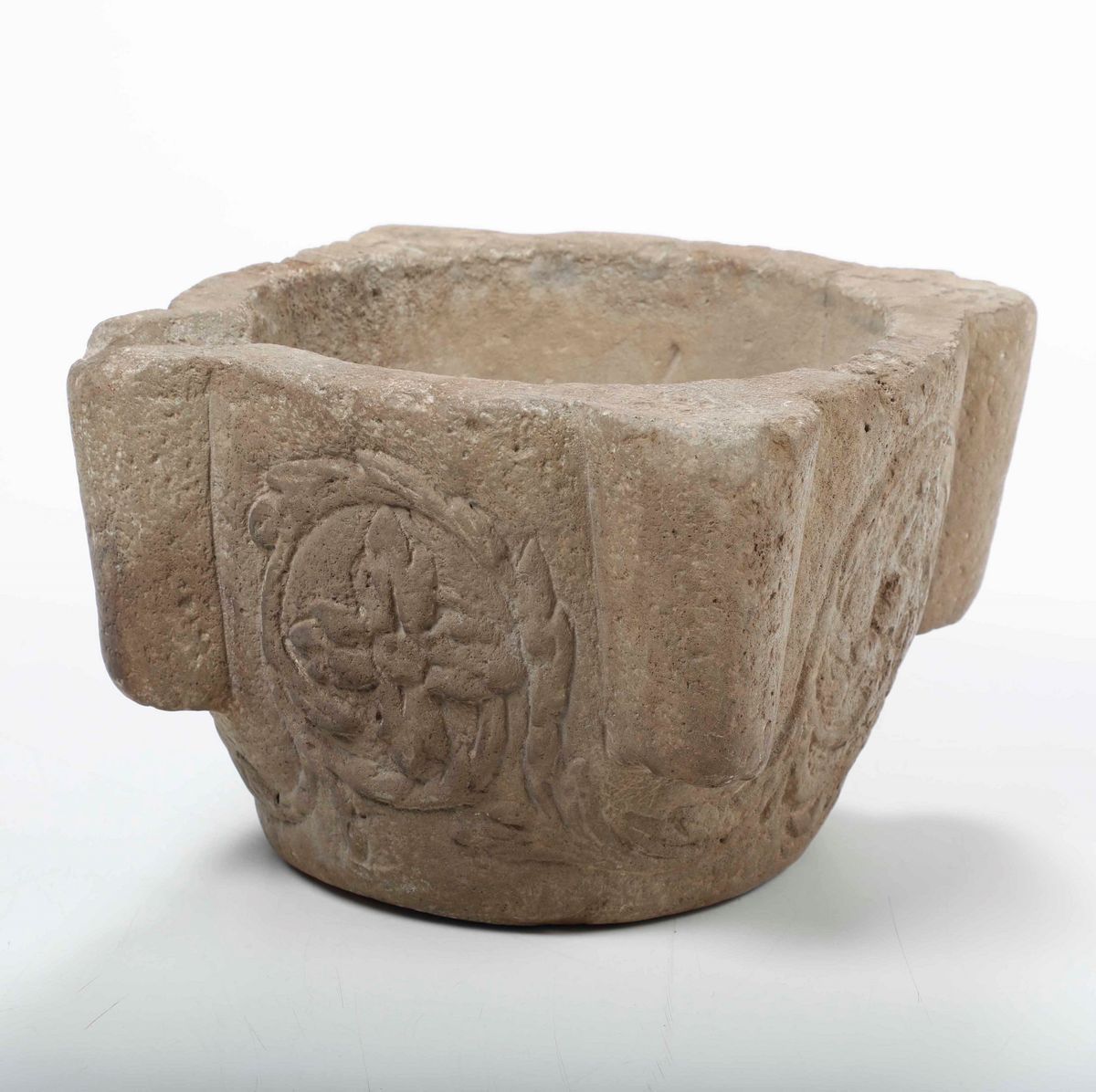 Mortaio in pietra scolpita. XVII-XVIII secolo