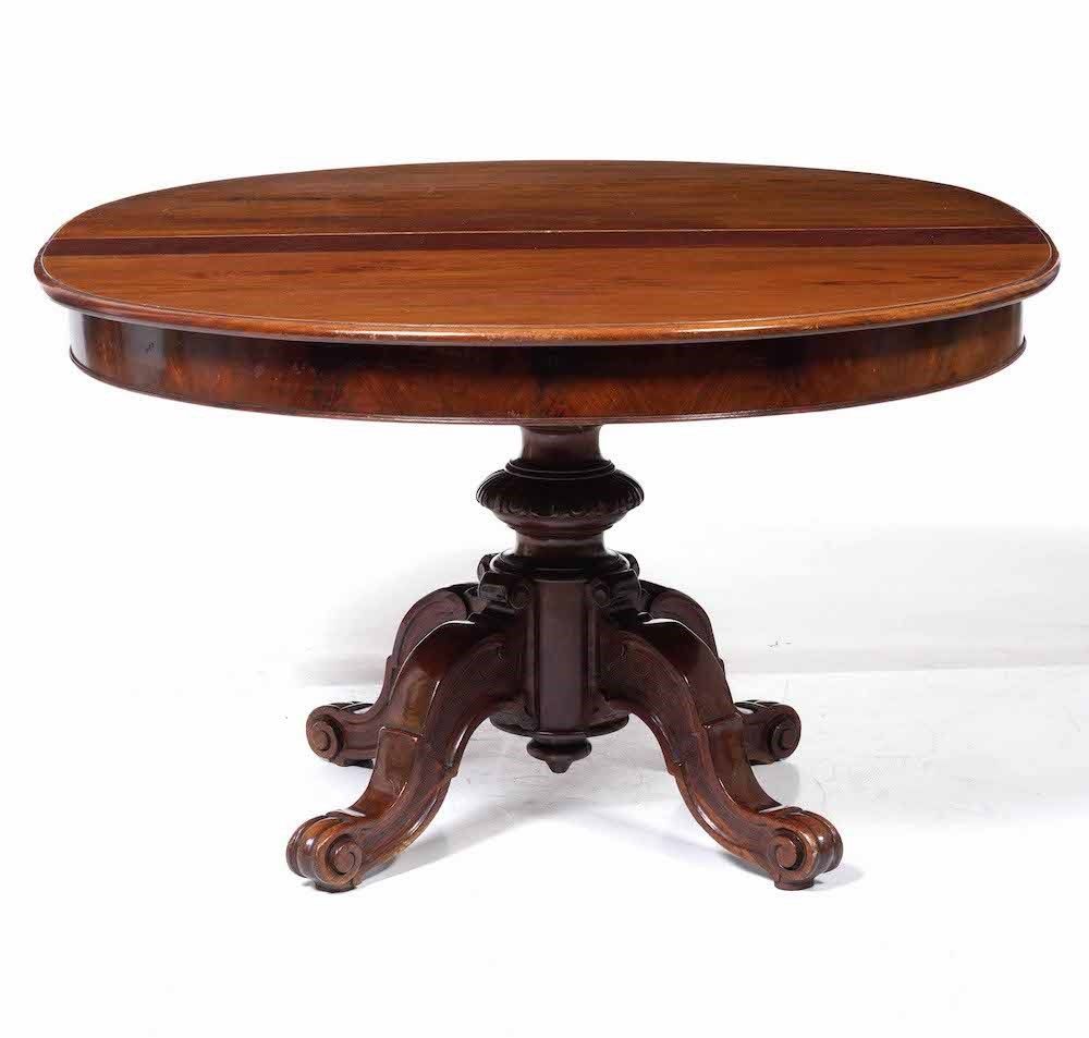 fusto centrale a balaustro terminante con quattro piedi a voluta
