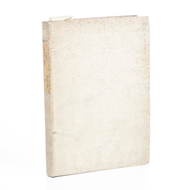 In-4°. Rilegatura antica, presumibilmente del secolo XVIII, in cartone alla rustica. Discreto esemplare che presenta alcune annotazioni marginali a inchiostro rosso, colore utilizzato anche per decorare parzialmente le piccole silografie intercalate nel testo.