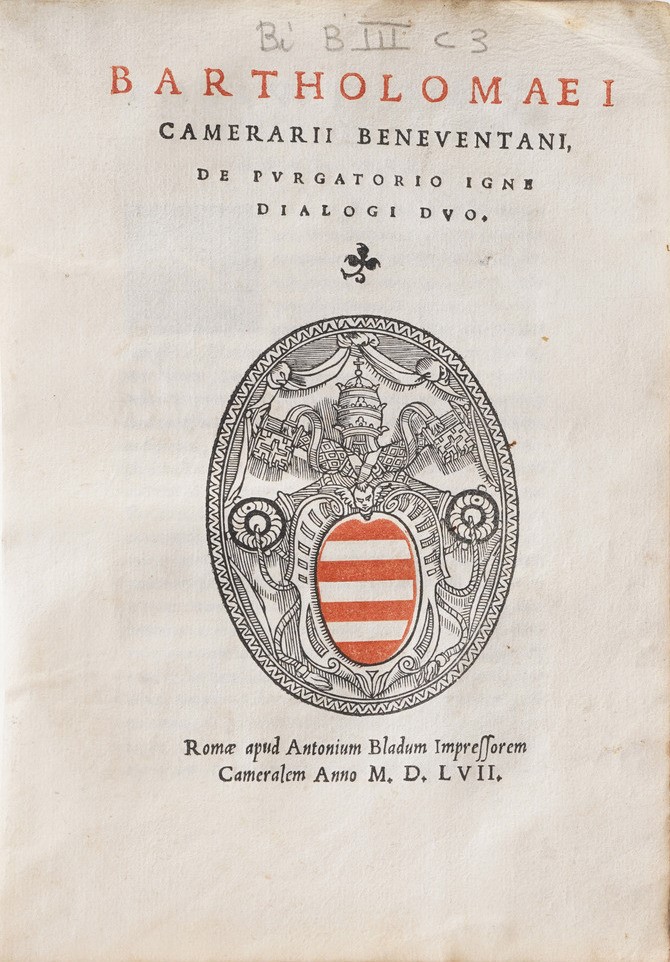 Camerario Bartolomeo Bartholomaei Camerarii Beneventani, De Purgatorio igne dialogi duo. Roma, Apud Antonium Bladum Impressorem, 1557