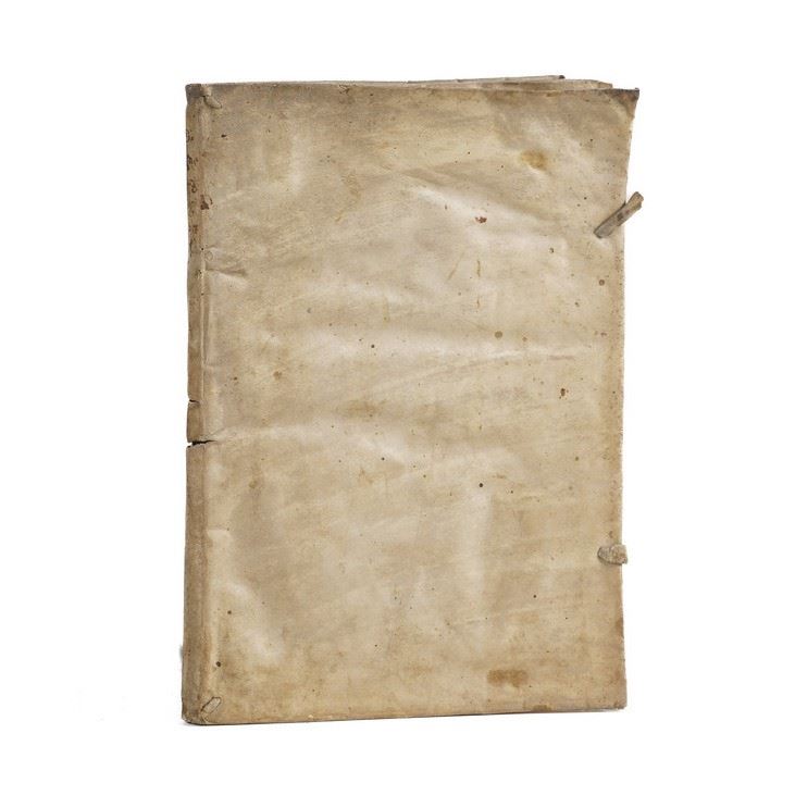 In-4°. Rilegatura coeva in pergamena morbida. Buon esemplare genuino. Una macchia che interessa alcune carte