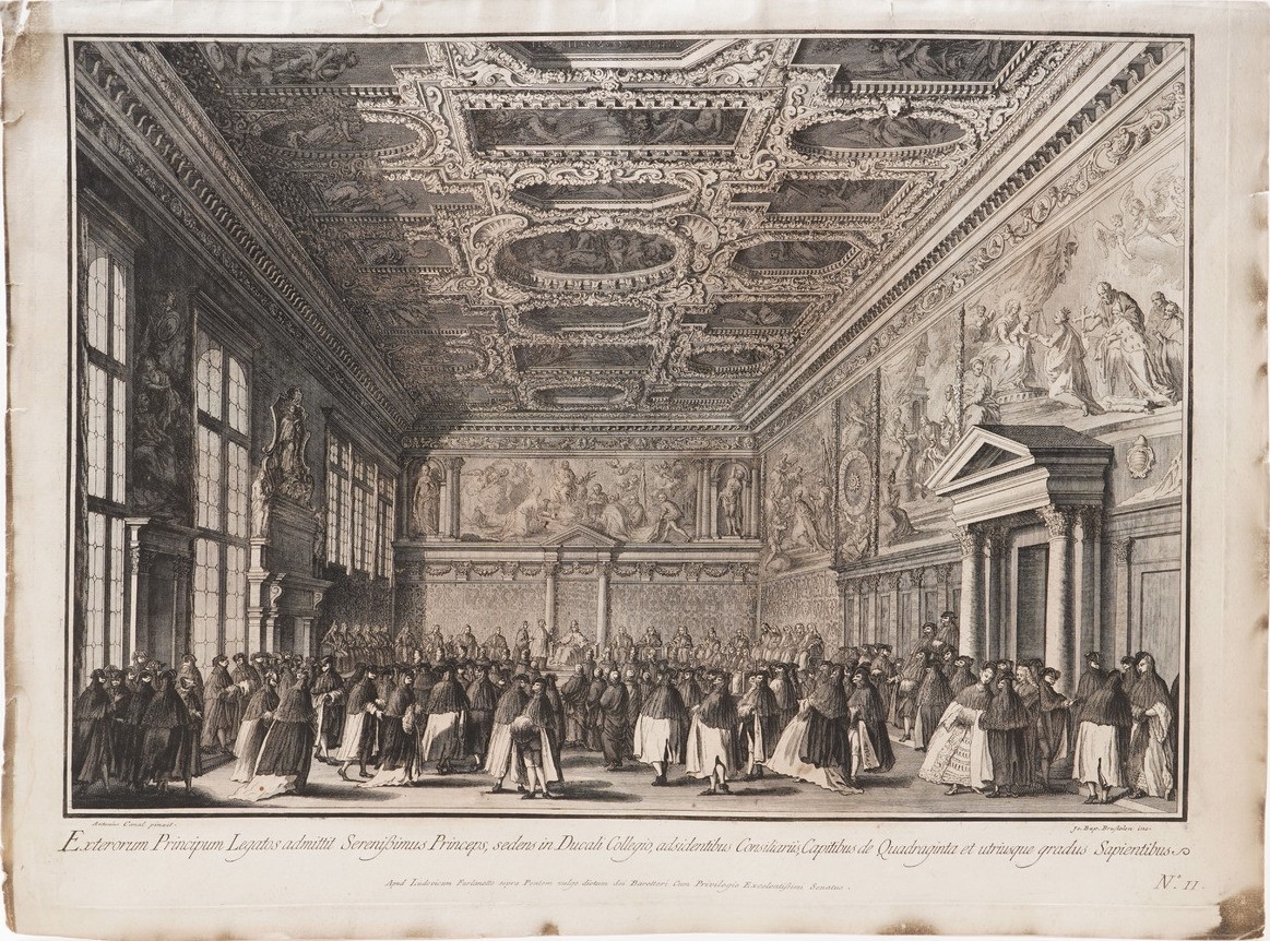Cavalli-Piazzetta. Due incisioni Sec XVIII. Ricevimento degli ambasciatori nel salone di Palazzo Ducale... apud Ludovicum [..]