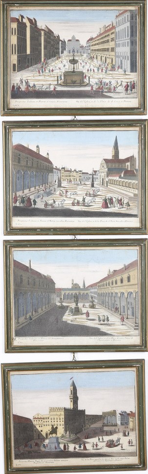 Firenze-vedute ottiche. Quattro vedute ottiche in bella coloritura. Francia, secolo XVIII.