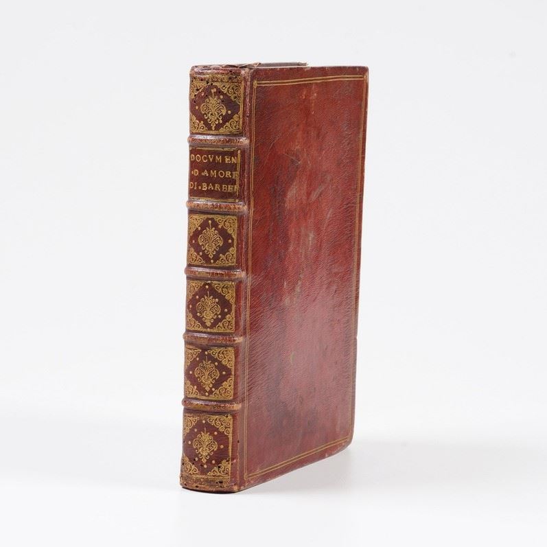 In-4°. Bella rilegatura coeva in marocchino rosso, che presenta abrasioni e piccoli difetti. 2 Ex libris al contropiatto anteriore. Illustrato da belle tavole in rame nel testo. Esemplare discreto di questo magnifico prodotto della tipografia romana barocca, purtroppo non del tutto esente da gore e bruniture.