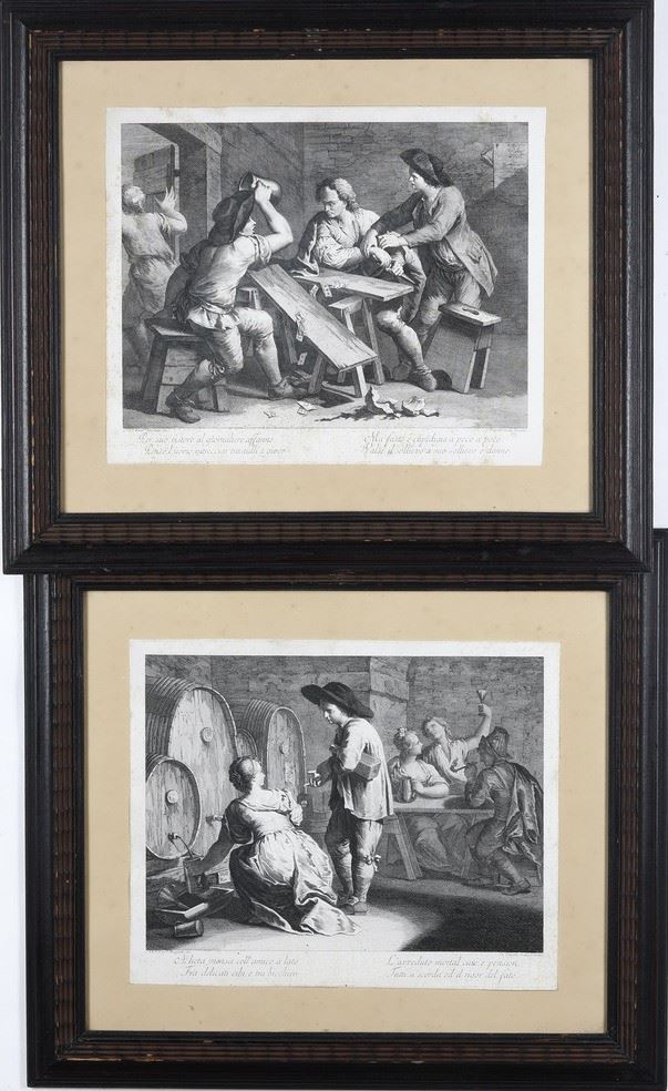 Giovanni Volpato da Francesco Maggiotto Coppia di incisioni dalla serie dei proverbi - scene di genere... Venezia seconda metà sec. XVIII