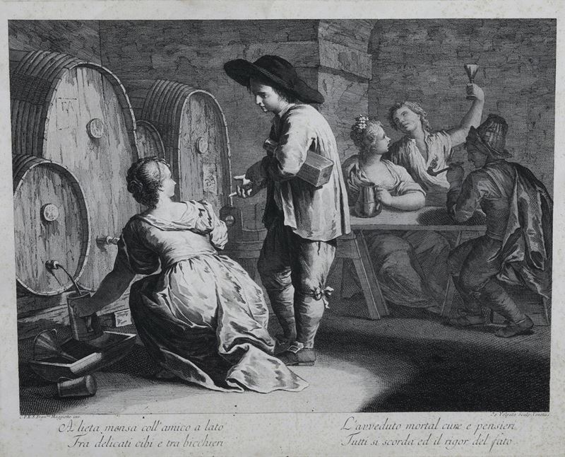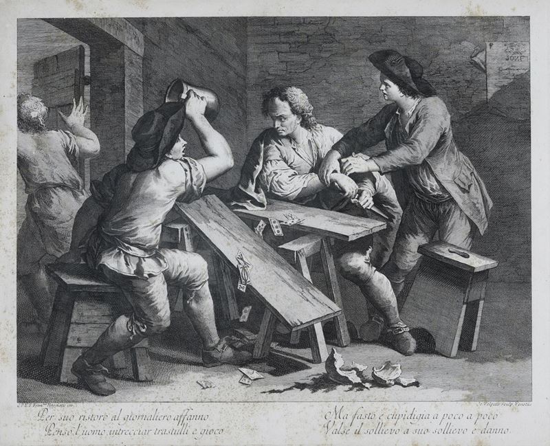 Giovanni Volpato da Francesco Maggiotto Coppia di incisioni dalla serie dei proverbi - scene di genere... Venezia seconda [..]