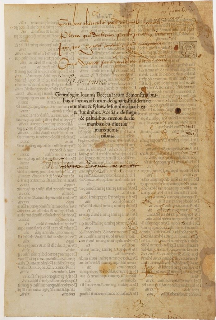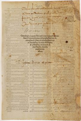 Incunabolo figurato - Boccaccio Giovanni Genealogiae Ioannis Boccatii:cum demonstrationibus in formis arborum designatis.eiusdem [..]