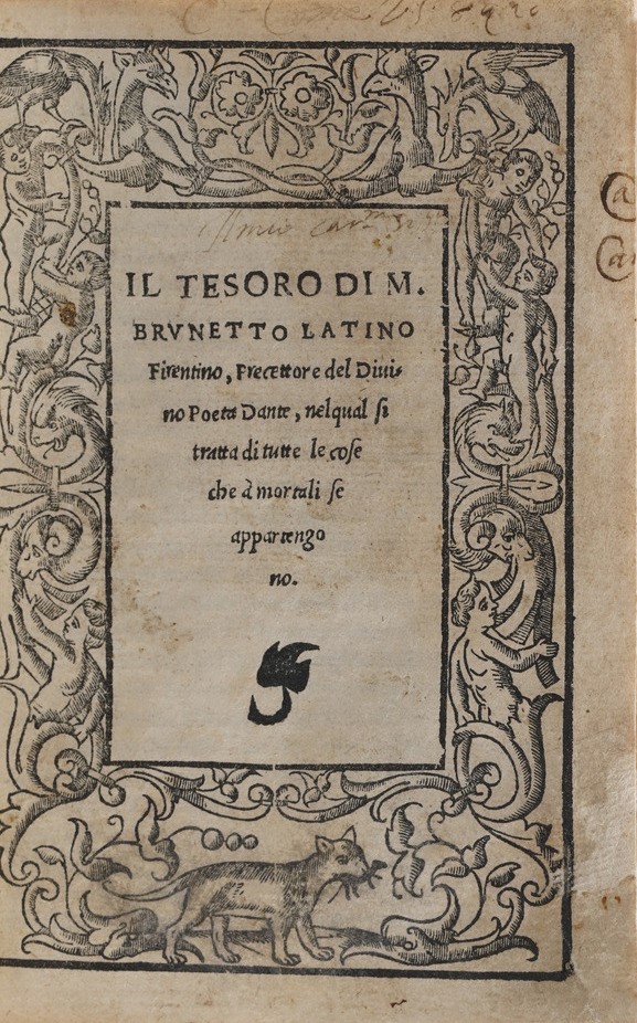 Latini Brunetto Il Tesoro di M. Brunetto Latino precettore del divino poeta Dante, nel quale si tratta di tutte le cose che a mortali se appartengono
