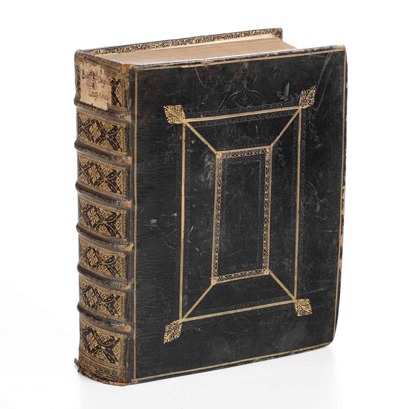 In 4°. Rilegatura coeva in marocchino nero con ricchi fregi in oro e piatti al dorso. Tagli dorati. Abrasioni ai piatti. Buon esemplare, tuttavia non esente da bruniture più accentuate ad alcune carte.