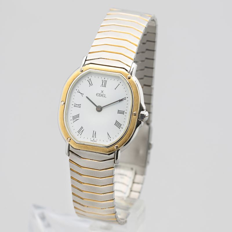 Orologio da polso Ebel Sport Classique, in acciaio con inserti in oro, quadrante bianco con numeri romani, movimento al quarzo, mm 29x27