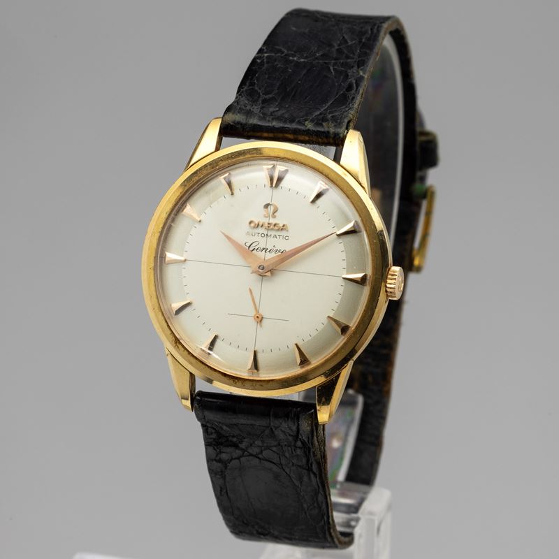 Omega in oro 18k, quadrante Argentè a settori, secondi al sei, carica manuale, 32 mm, 1960 cieca