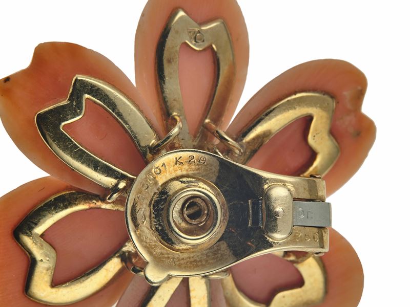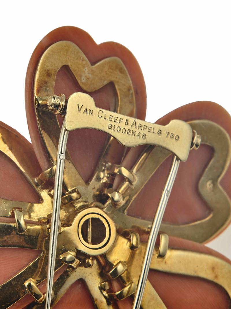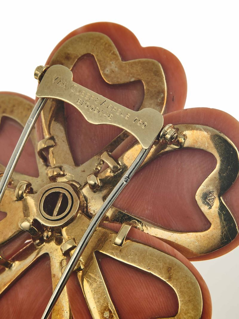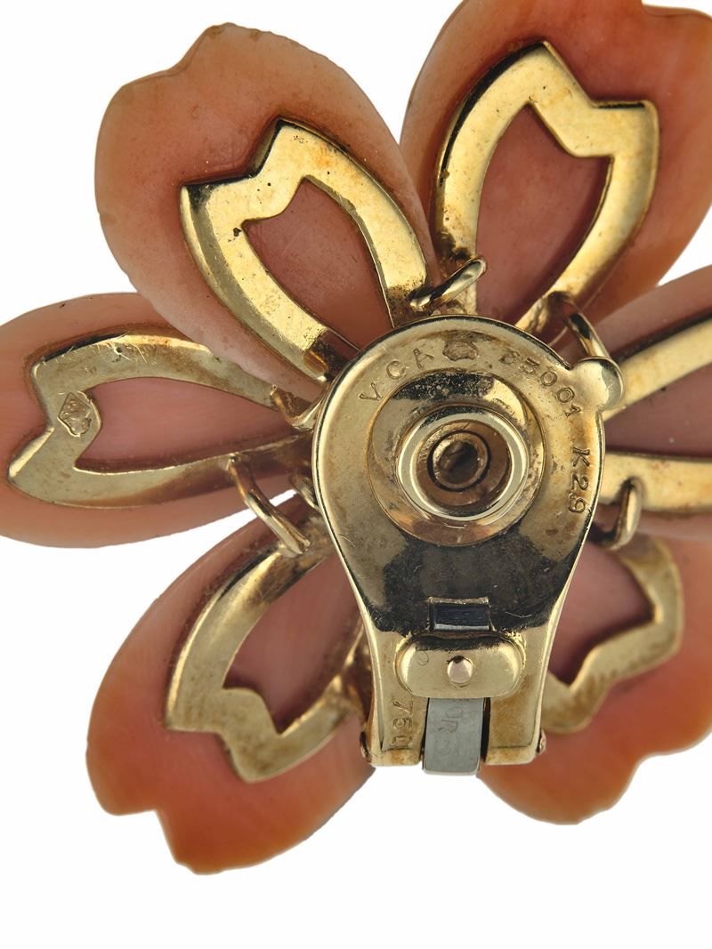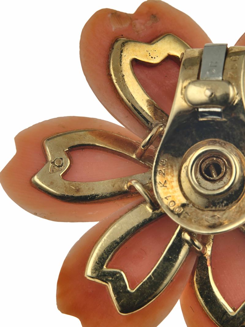 Van Cleef & Arpels. Demi-parure 'Rosa di Natale' composta da spilla ed orecchini con corallo e diamanti
