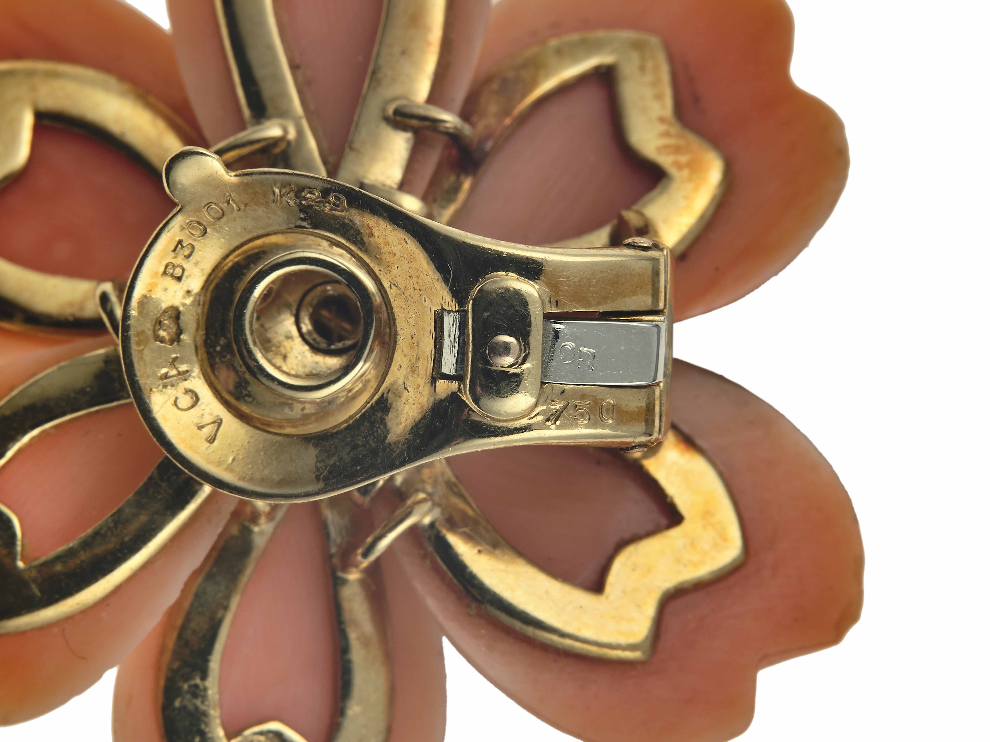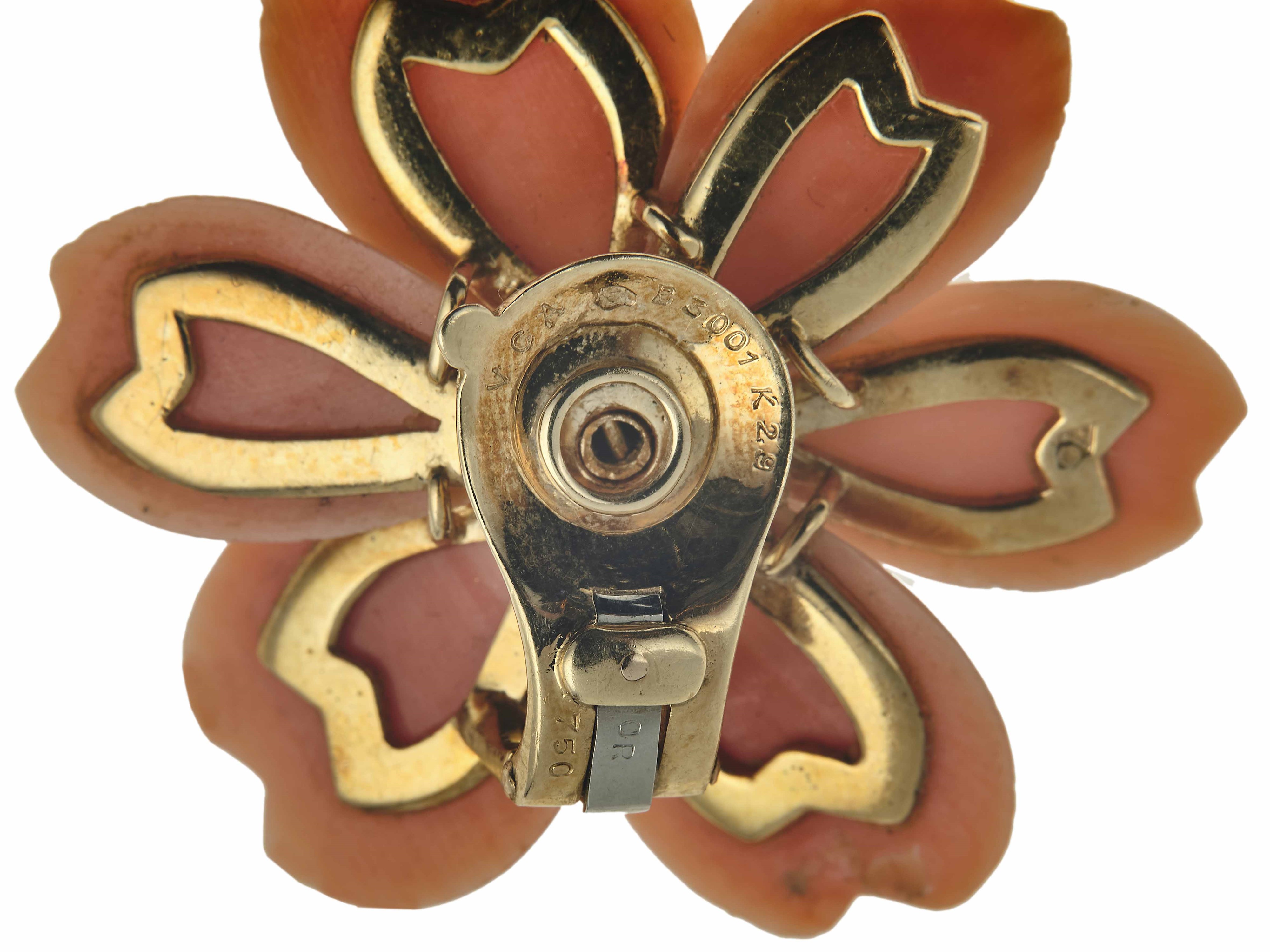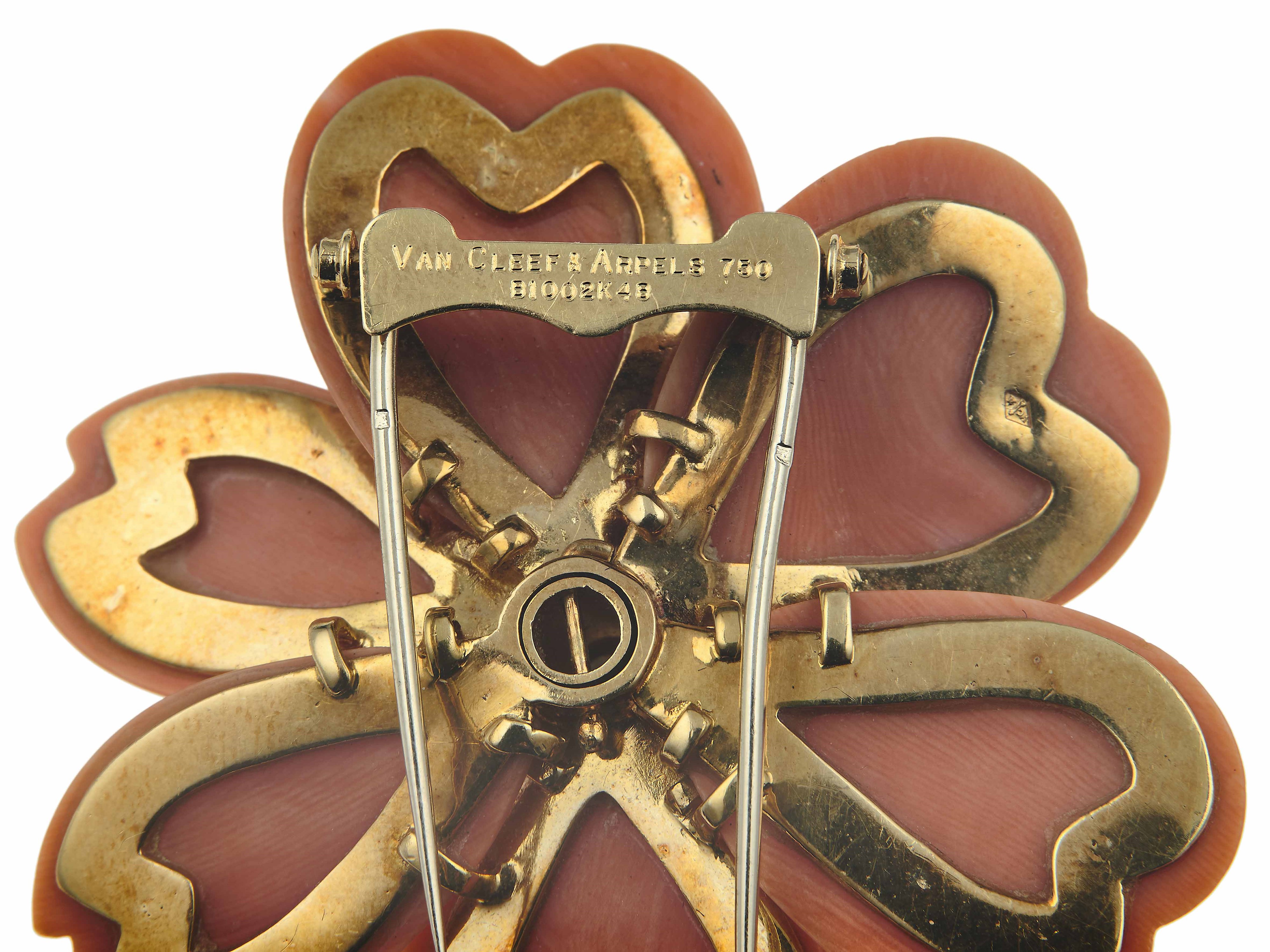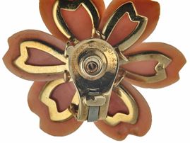 Van Cleef & Arpels. Demi-parure 'Rosa di Natale' composta da spilla ed orecchini con corallo e diamanti