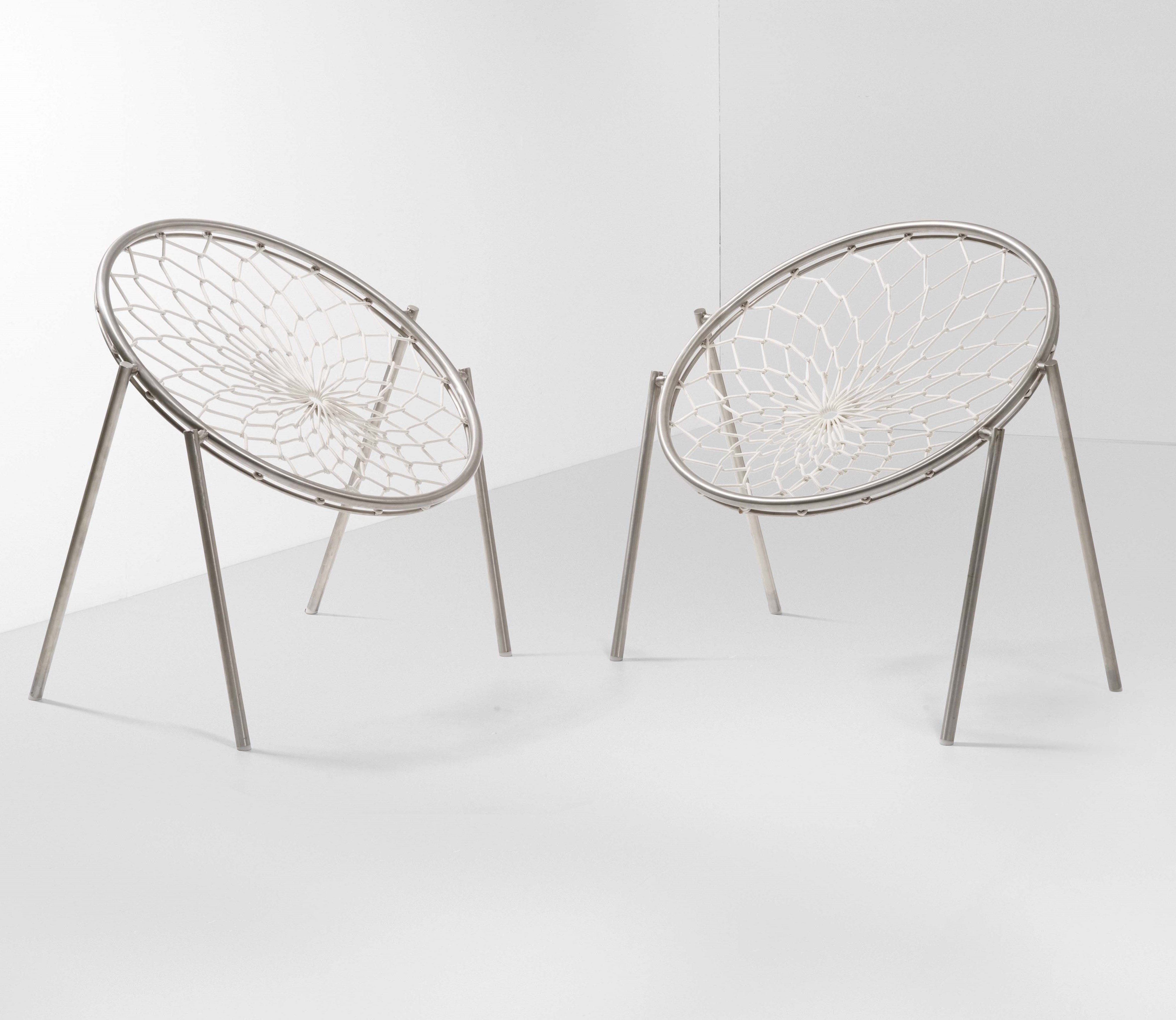 Struttura in metallo cromato e seduta in rete di tessuto. Prod. Italia 1980 ca.