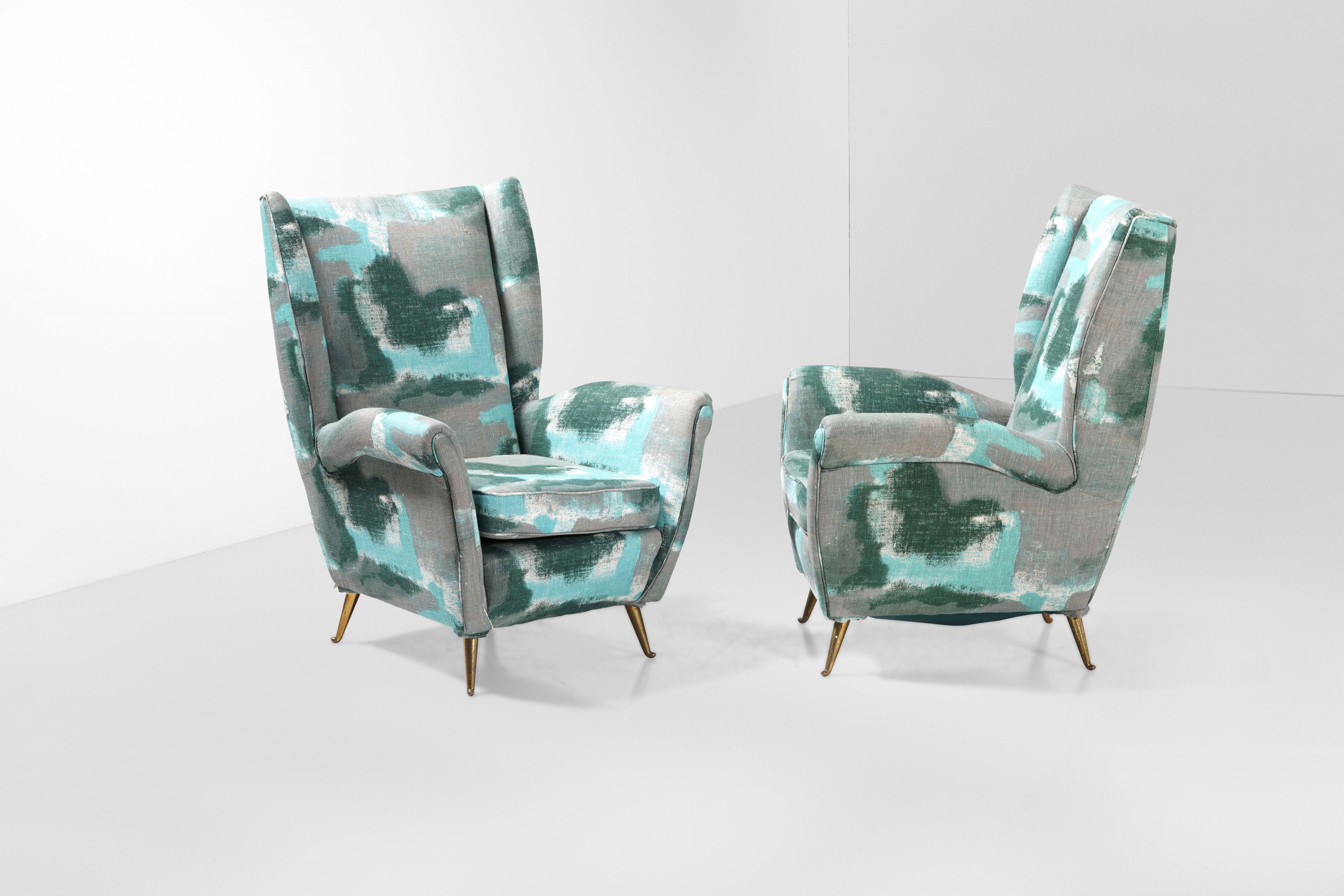 Struttura con sostegni in ottone e rivestimenti con tessuto Taiga di Rubelli.