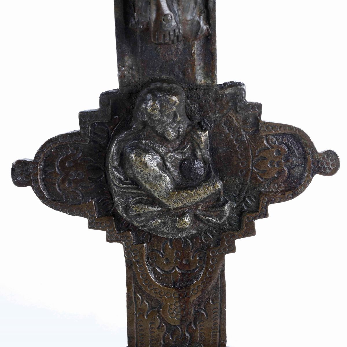 Bronzista veneto. Antica croce astile in bronzo fuso e cesellato con Evangelisti e simboli della passione. Fonditore veneto [..]