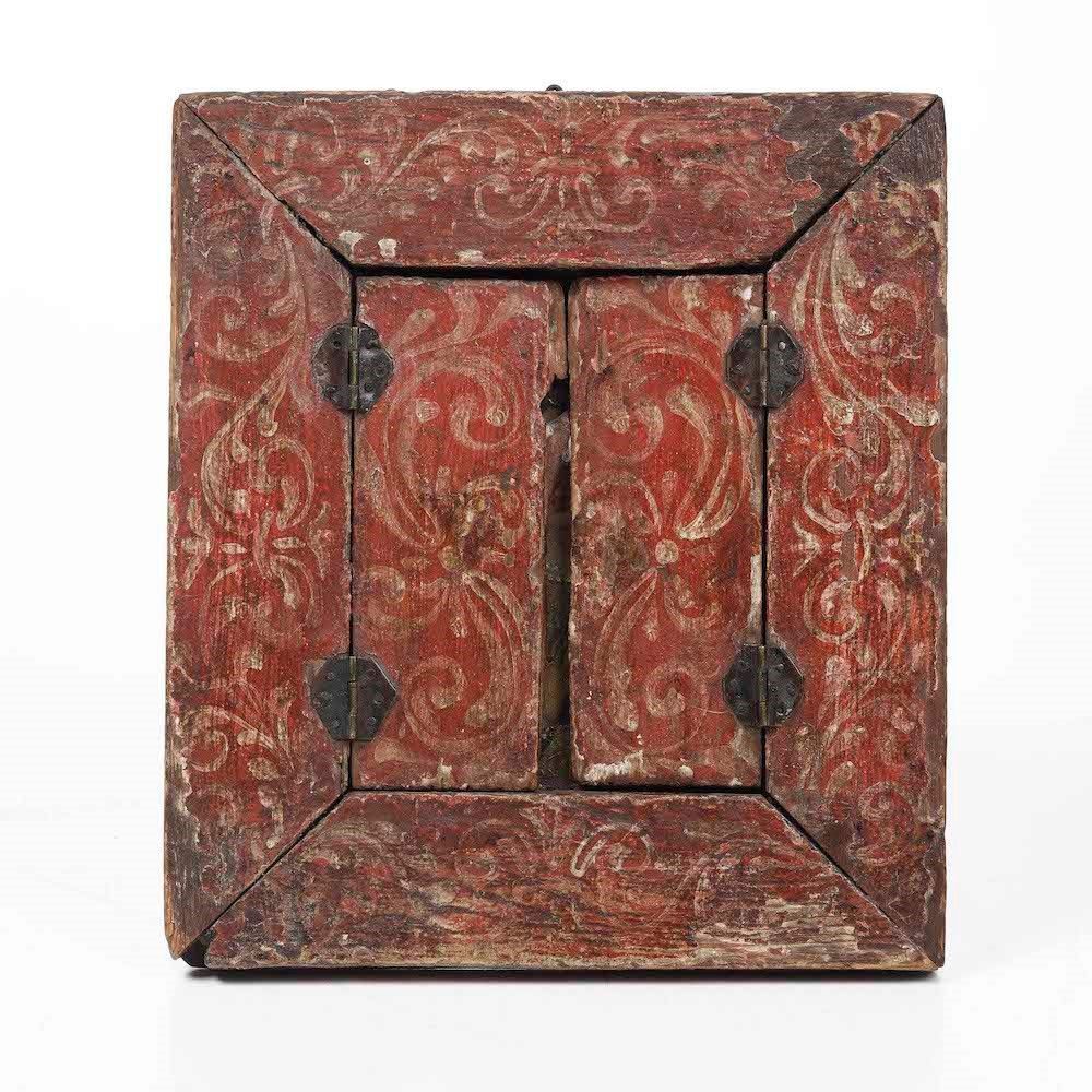 Piccolo altarolo ligneo da viaggio apribile a due sportello. Messico, XVIII secolo