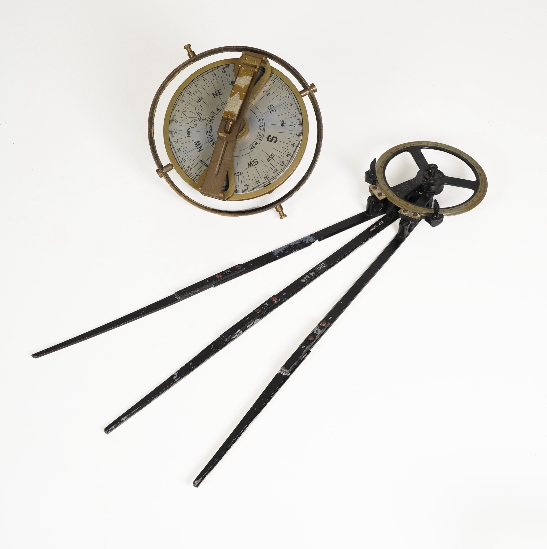 Lotto composto da traguardo su rosa dei venti montato su sospensione cardanica e goniometro